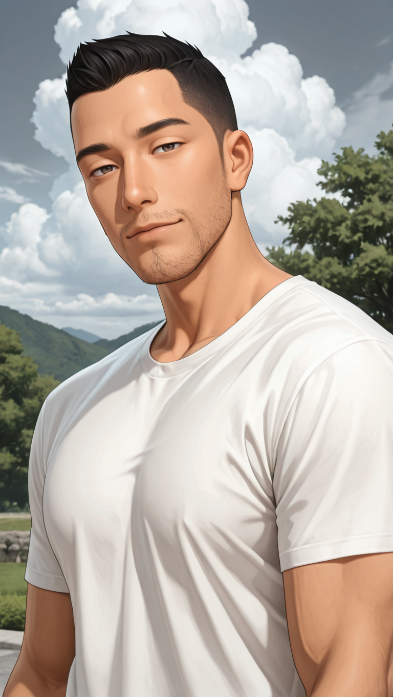 ts4kuro, 1boy, very short hair, stubble, asian, mature