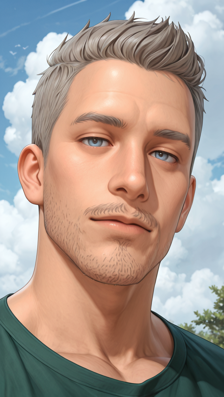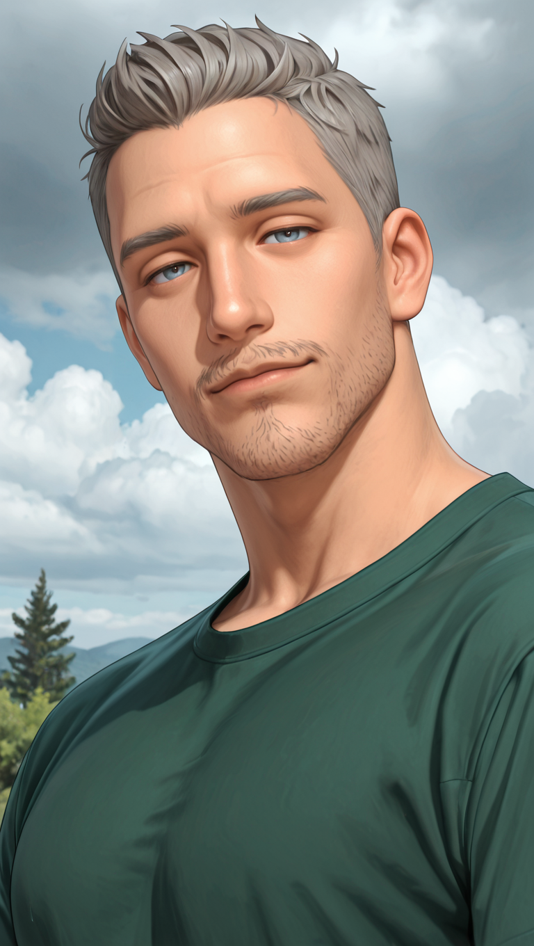 ts4masahiro, 1boy, mustache stubble, very short hair, grey hair, blue-grey eyes, mature