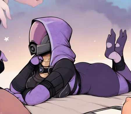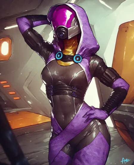 This is a lora trained on 119 hand picked images of Tali'Zorah from Mass Effect. It was trained mostly on digital art, but there are some 3d renders in there for variety. I know there is already another Tali'Zorah lora on this site... But I had already trained this before checking so... Here we are! I have not tested between the two, so it's up in the air which one is better. Feel free to test. It was trained on danbooru-style tags, so use those when trying to prompt - I've included the tags in a .txt file in the "Training Images" download below.