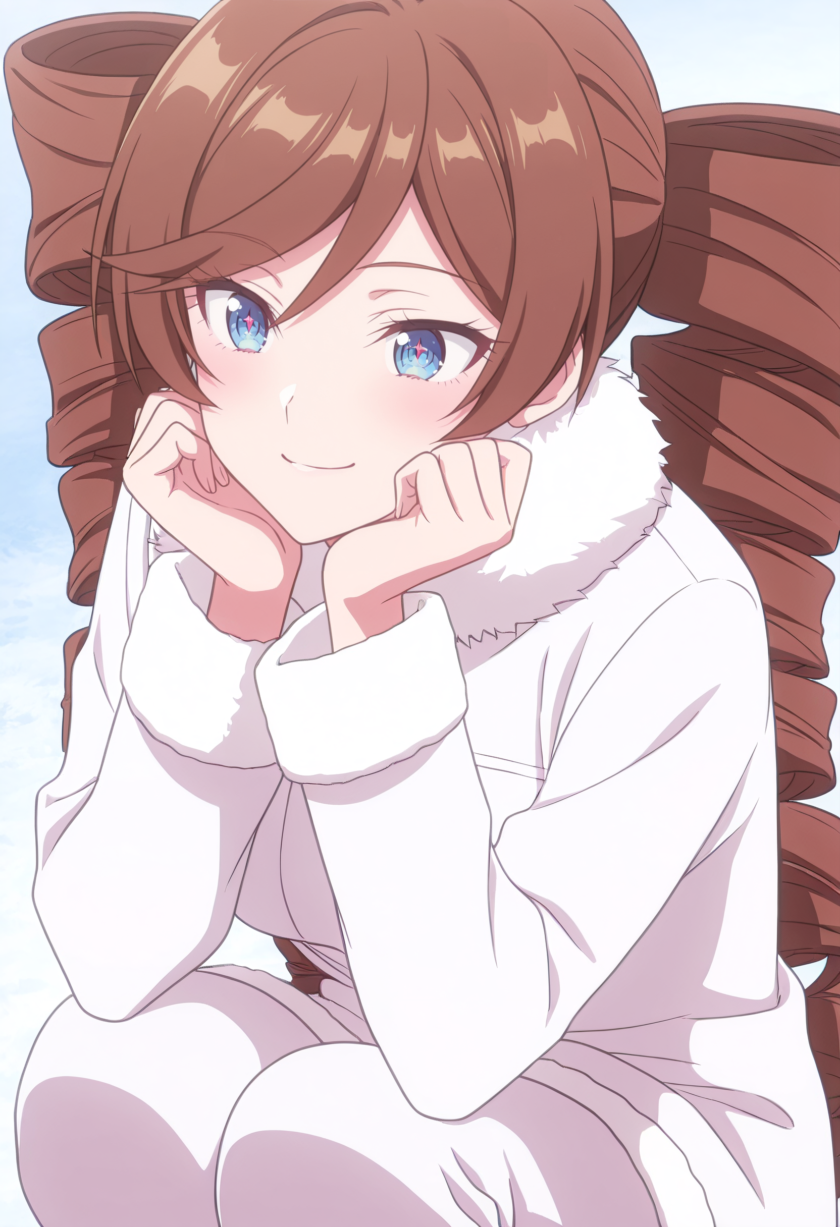 KTEmily、ドリルヘア、長い髪、茶色の髪、ツインドリル、非常に長い髪、青い目、