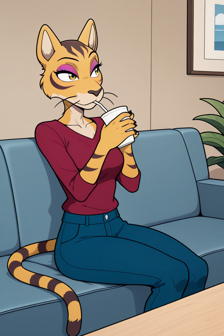 タグ: luna_bs, アンスロ, ファリー女性、タイガーガール、虎の耳、虎の尾、アイシャドウ、ひげ