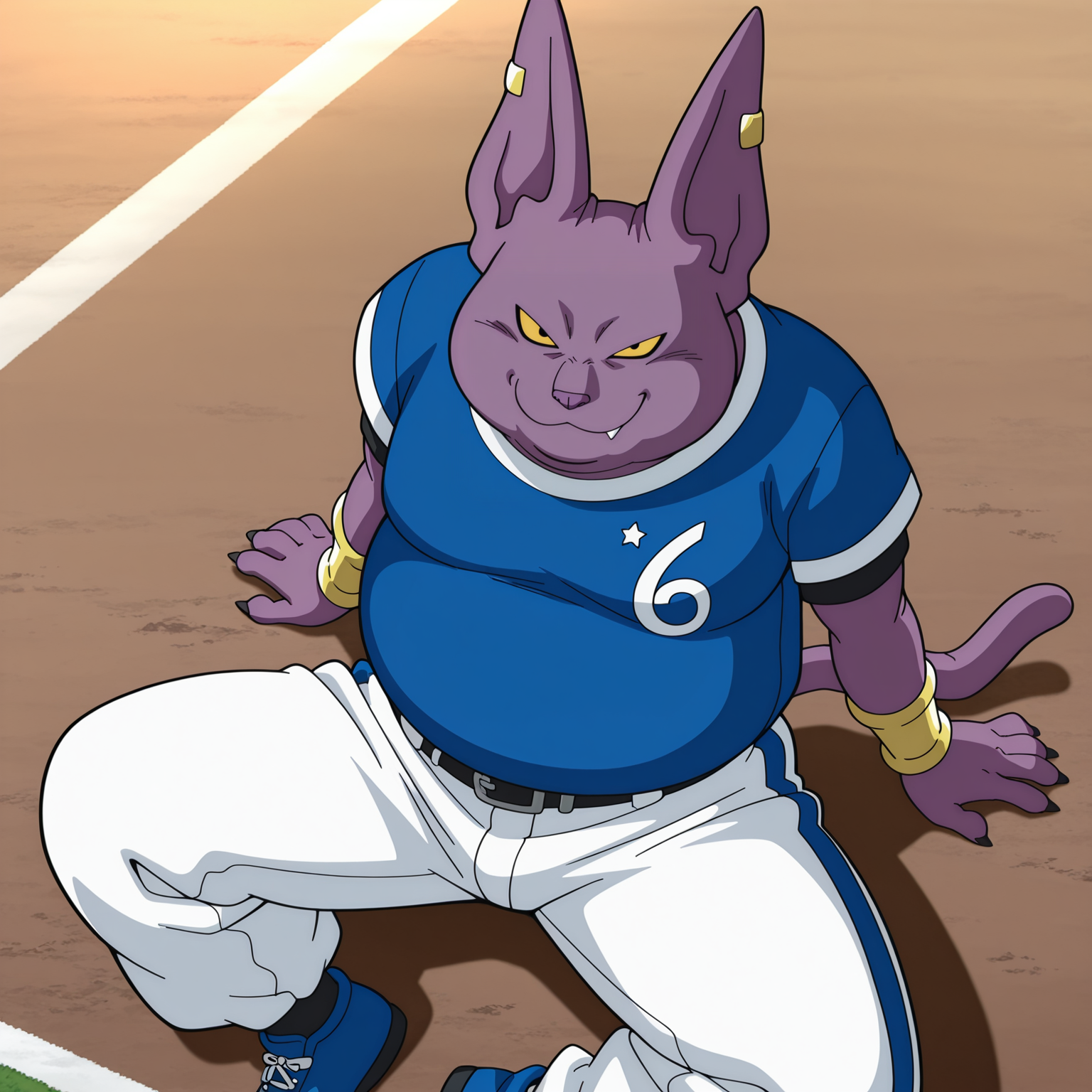| トレーニングワード | 1boy, male, furry, anthro, cat, solo, purple skin, yellow sclera, black eyes, purple nose, pointed ears, fangs, sharp teeth, sharp nails, tail, fat, plump, toplessコピーしました! gold earring on ear, red and black striped collar, gold armbands, gold bracelets, red sash, black flap on pants, red baggy pants, gold ankle bands, brown shoesコピーしました! blue t-shirt, short sleeves, dual sleeves, gold bracelets, black belt, silver buckle, white pants, blue shoesコピーしました! |