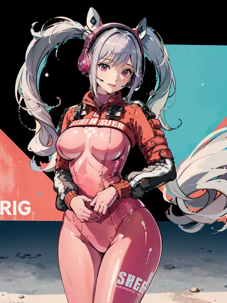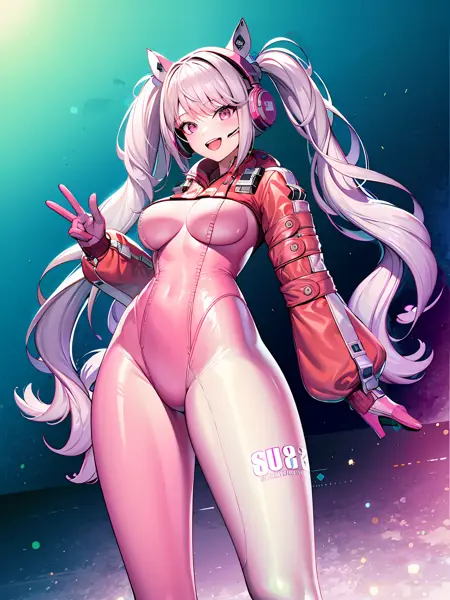 pink bodysuit,latex,pink twintails,headphonesなどのタグを追加することを推奨します。推奨ウェイト:0.75〜0.9。他のウェイトもお試しください。
