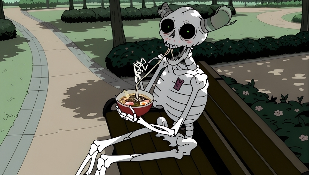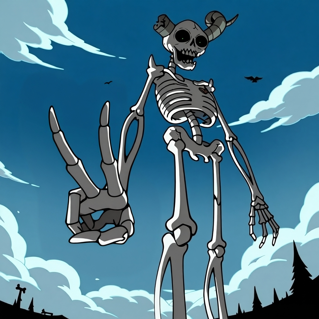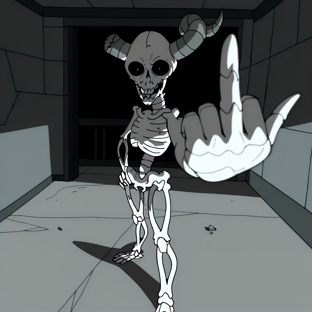 복장 미착용: the_lich, 뼈대, 두개골, 뿔, 부서진 뿔, 갈비뼈, 골반, 뼈다리, 빛나는 눈, 단독, 옷 없음