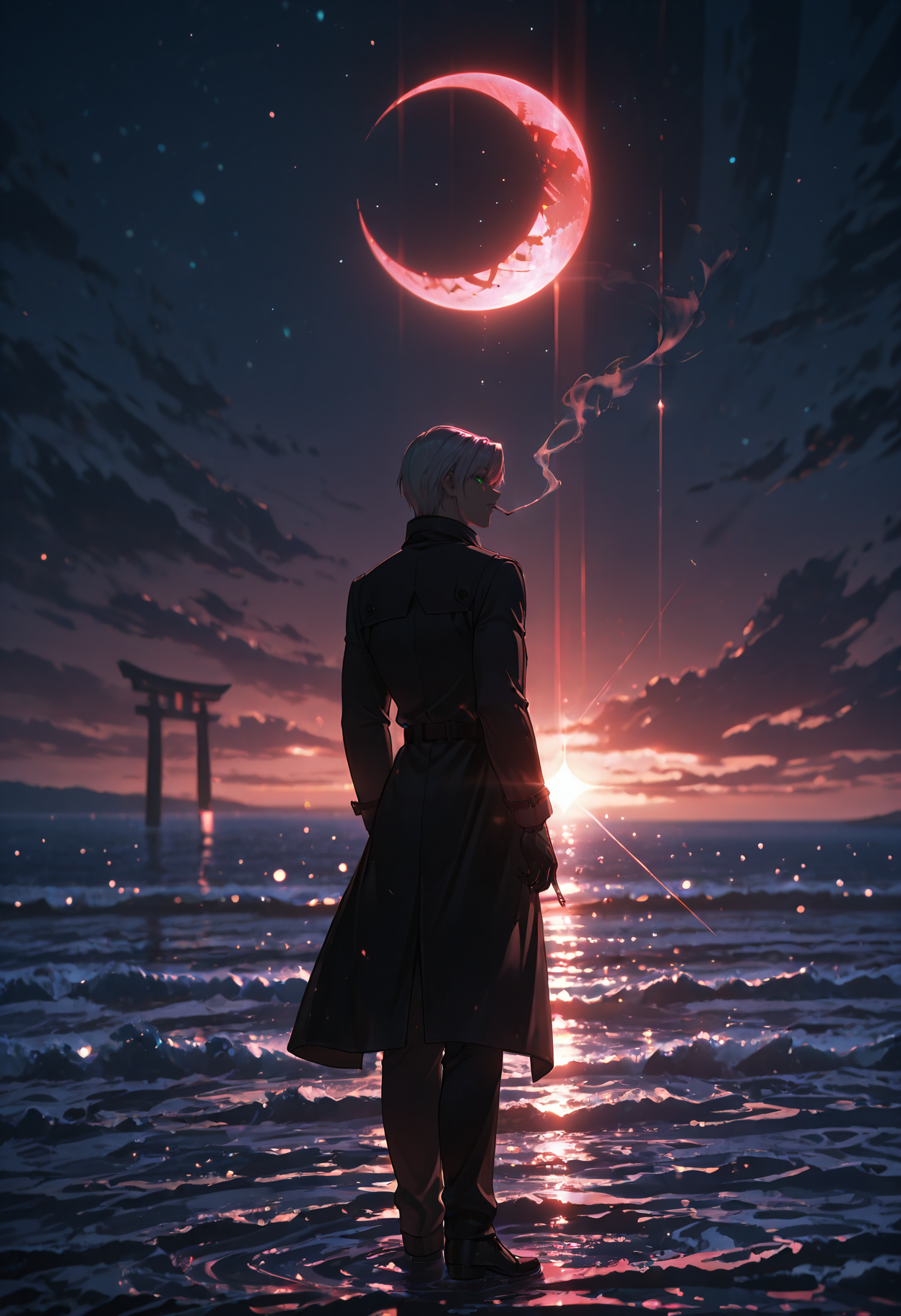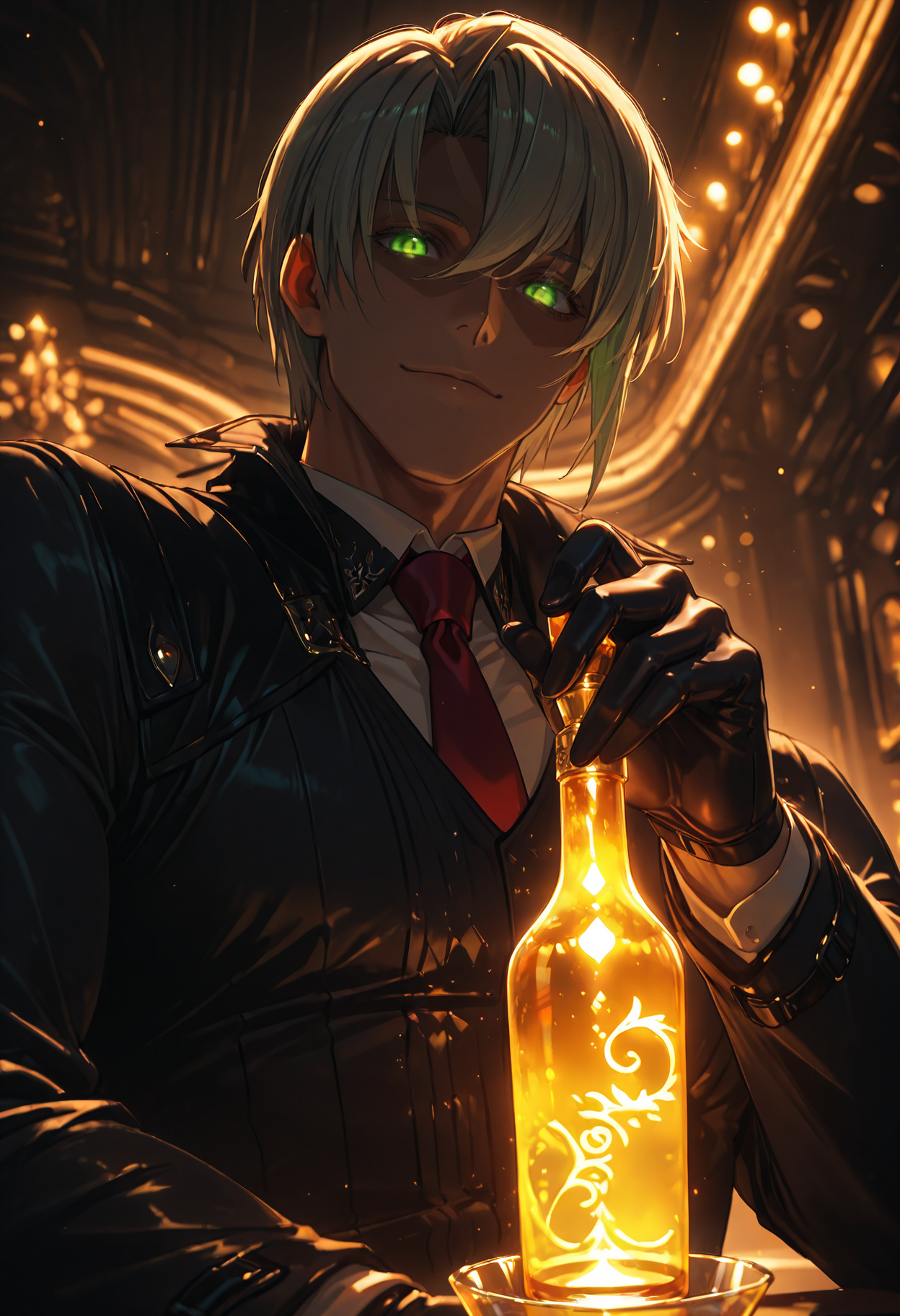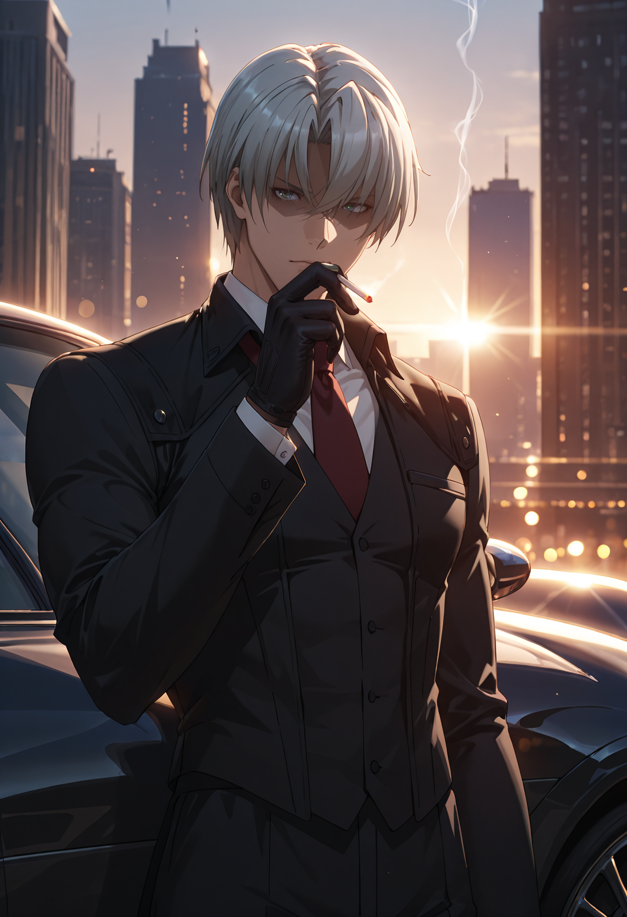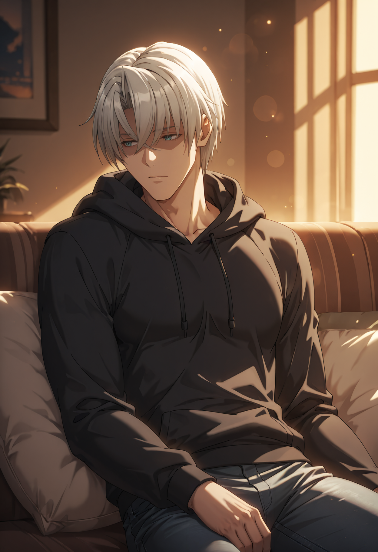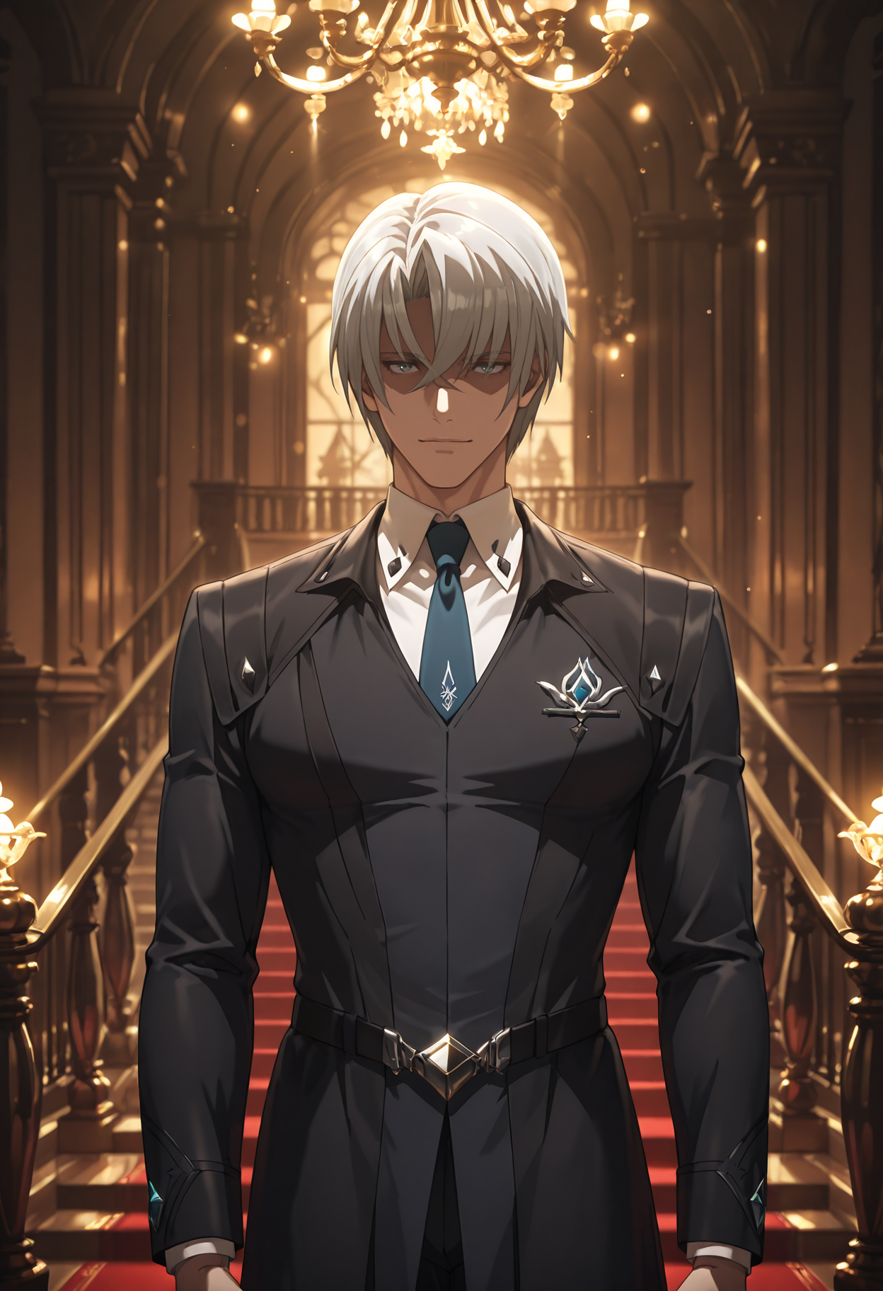 shinregliaxl, 녹색 눈, 회색 머리, 단발, 눈 사이의 머리, 그림자가 진 얼굴, 근육질의 남성, 성숙한 남성, 넓은 어깨,