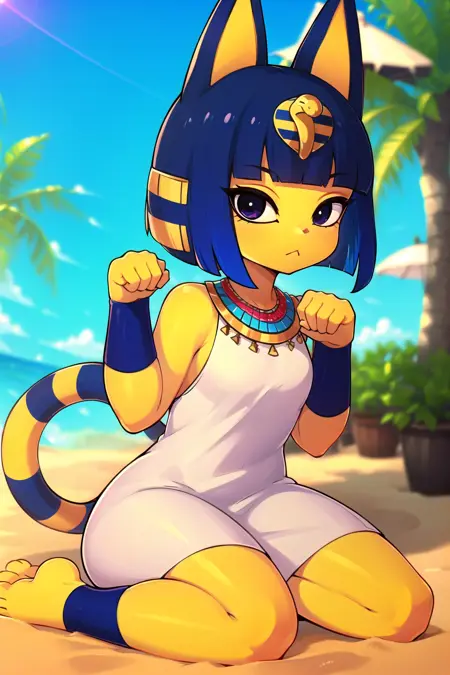基础提示词:蓝发,发饰,黄皮肤,黑眼睛,条纹尾巴,