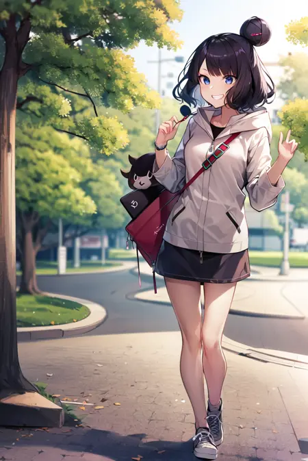 休闲装扮 - 葛饰北斋(Fate),单发髻,连帽夹克,肩包,发卡,裙子,鞋子