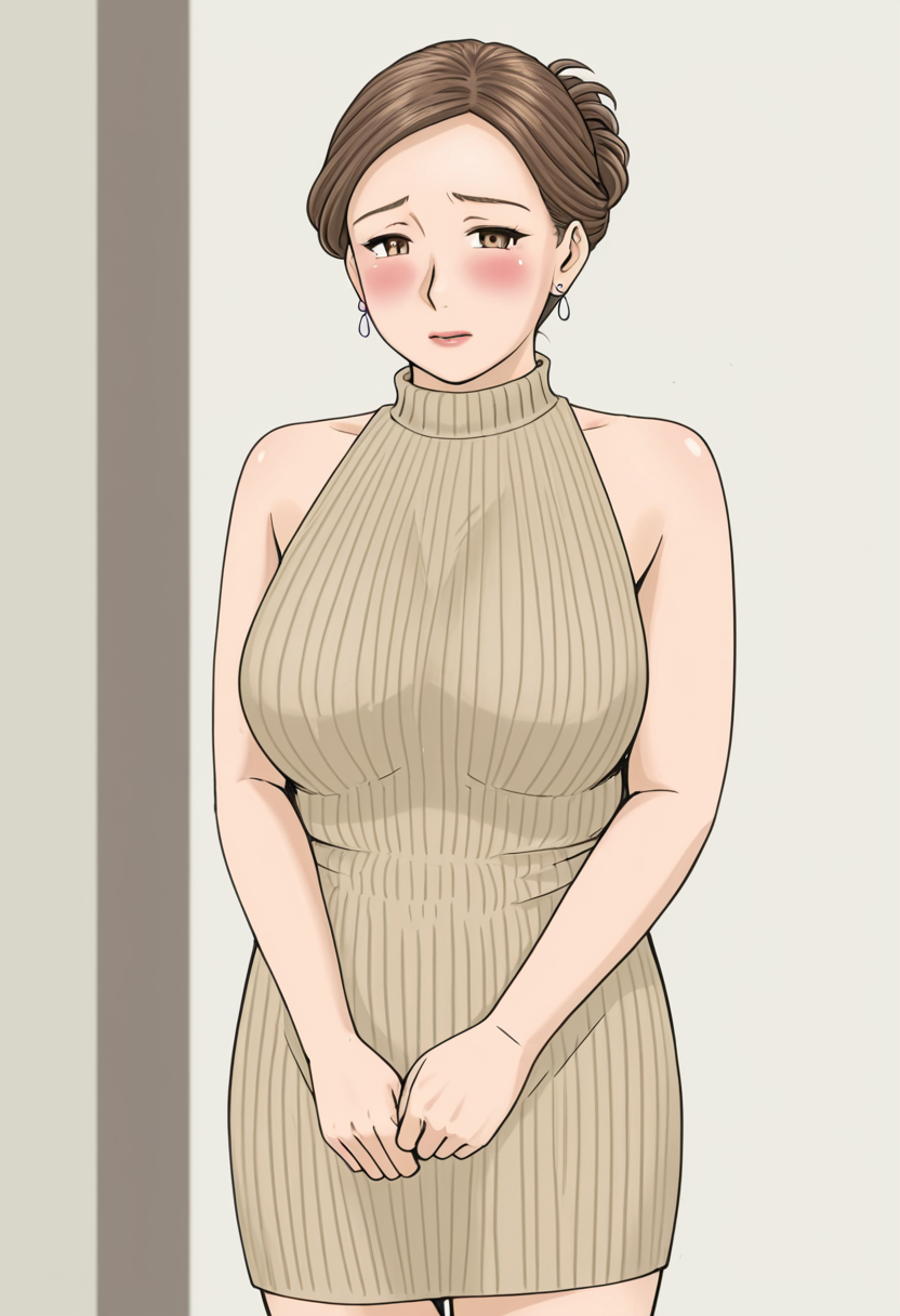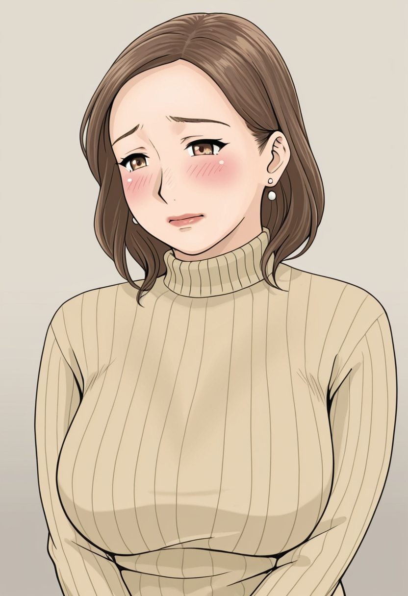 1girl, breasts, brown eyes, brown hair, large breasts, mature female,