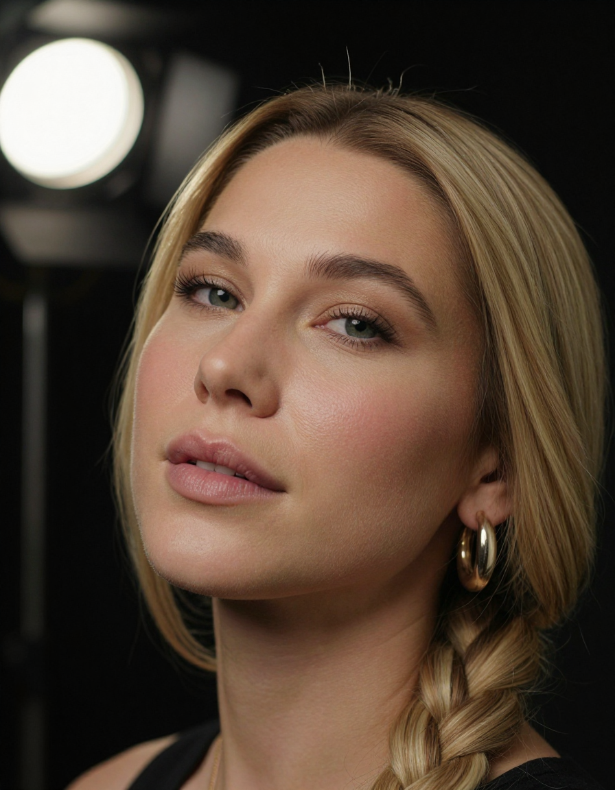 프롬프트에 추천하는 표현: CLAIRE A BLONDE WOMAN WITH 땋은 머리, 그리고 프롬프트의 나머지 부분