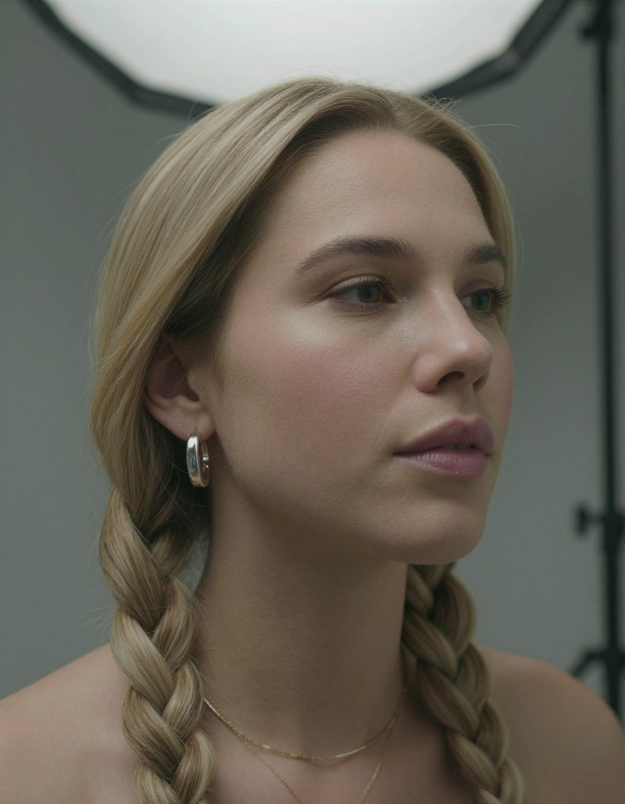 원본 이미지는 옆으로 땋은 머리를 가진 금발 소녀입니다. 그러나 저는 이 요소를 캡션에 포함시켜 머리카락 종류를 더 쉽게 변경할 수 있도록 모델을 학습시켰습니다.