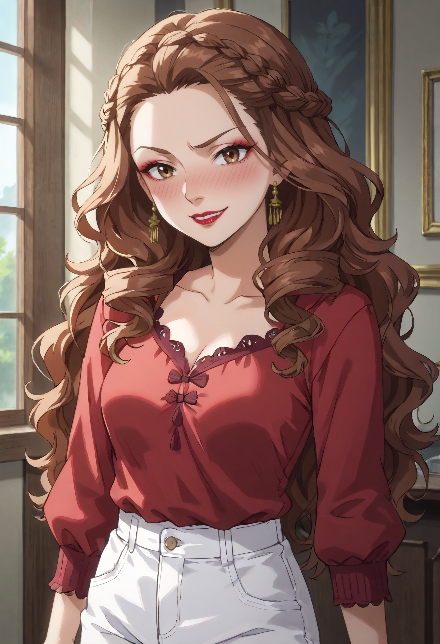 GZZSharon、長い髪、茶色の髪、茶色の目、編み込み、波状の髪、化粧、リップストップ、赤い唇、