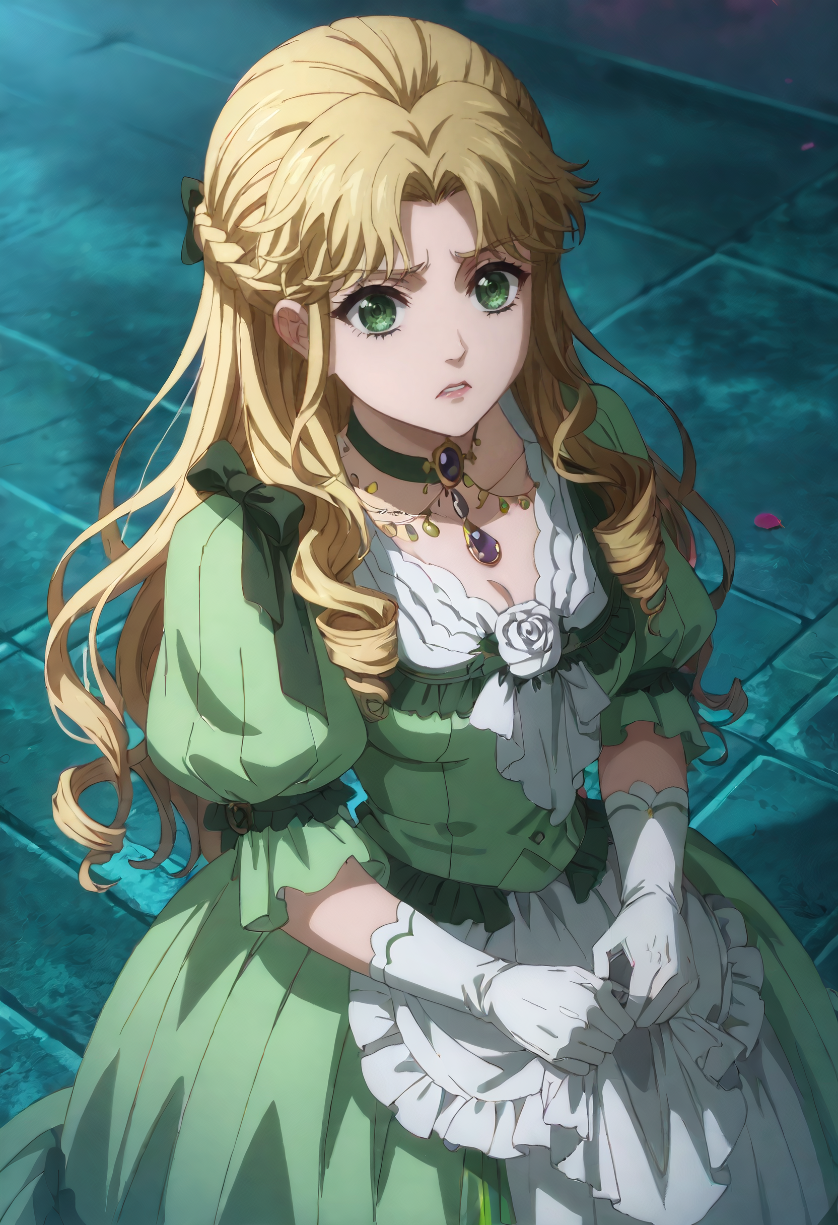 AudreyOutfit, 녹색 드레스, 드레스, 꽃, 장미, 초커, 풍성한 소매, 보석, 녹색 초커, 보석, 리본, 녹색 보석, 풍성한 짧은 소매, 가운, 장갑, 목걸이, 흰 장갑, 빅토리아풍, 긴 드레스, 주름진 드레스,