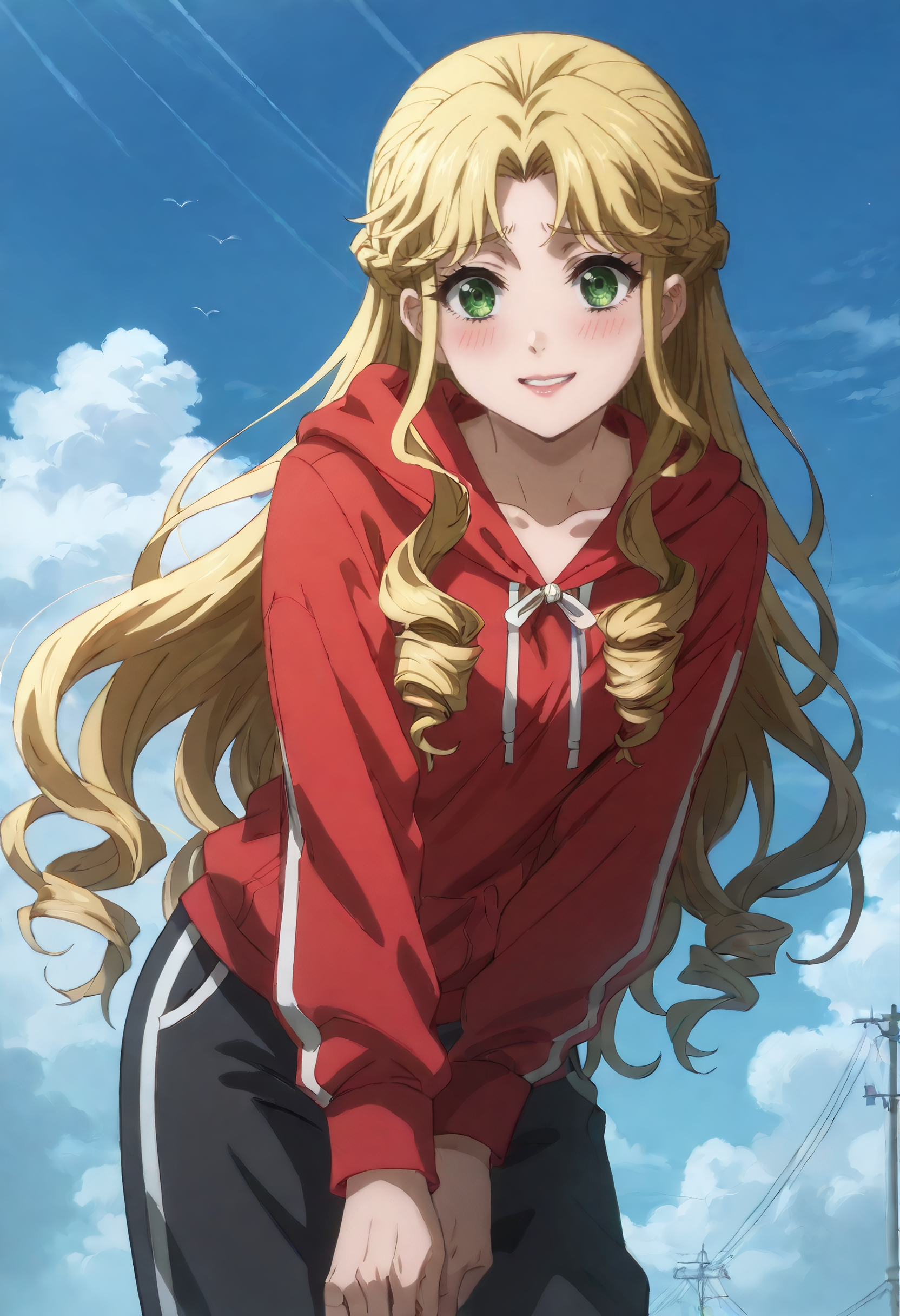 GZZAudrey, 긴 머리, 금발, 녹색 눈, 땋은 머리, 드릴 헤어, 드릴 사이드락, 갈라진 앞머리, 사이드락,