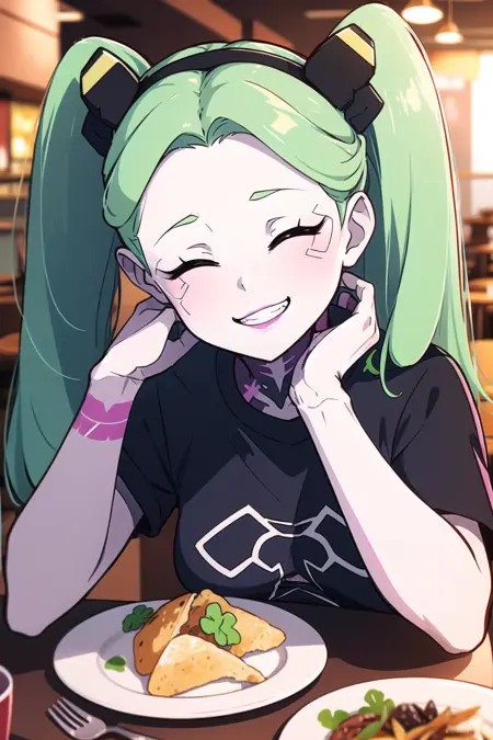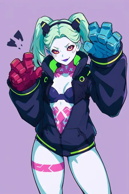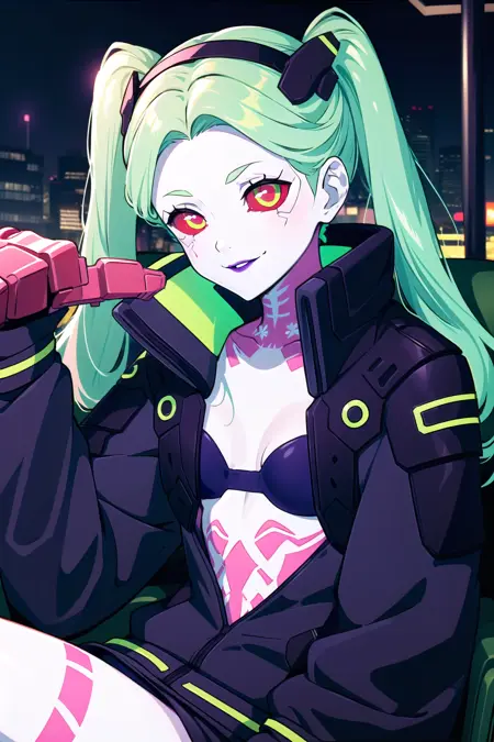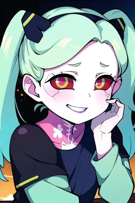 일반 프롬프트: 녹색 머리카락, 붉은 공막, 분홍색 문신,