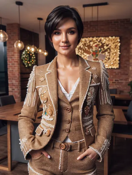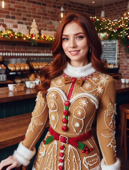 提示词:{某种服饰} 由圣诞姜饼制成