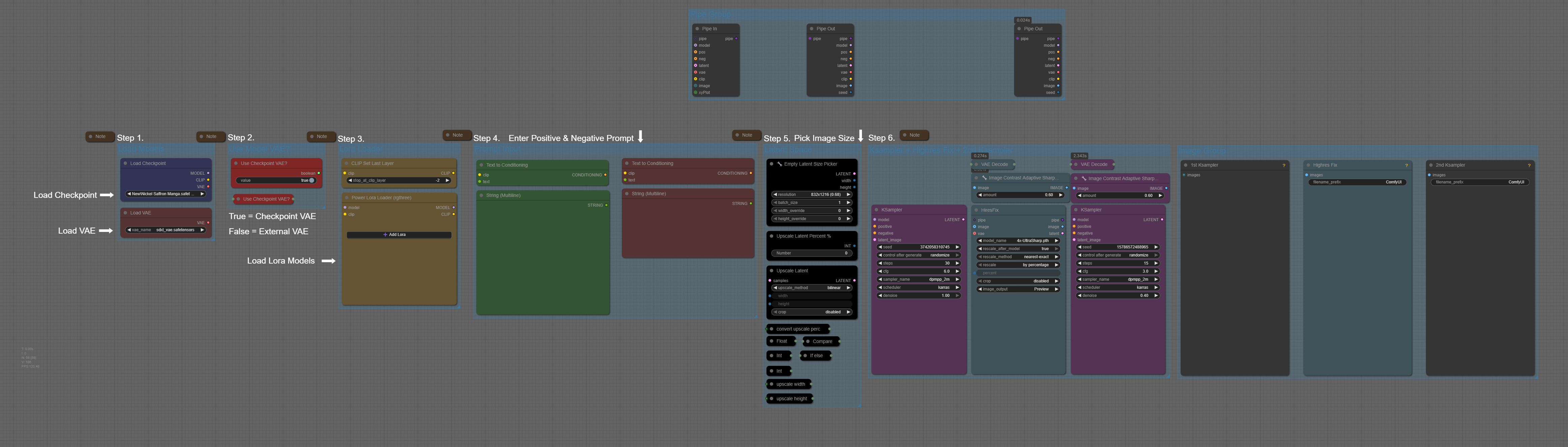 High-Res Fix then upscales the pixel image produced by the first KSampler and prepares it for refinement.