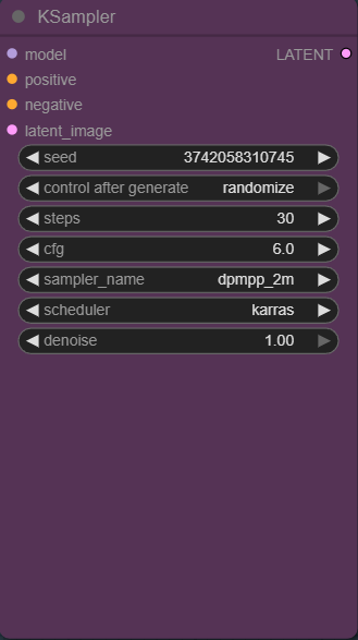 The Upscale Latent node resizes the latent before it’s ever turned into an image. At this stage the latent is just noise, but resizing it still matters because it changes the canvas and structure of that noise before the model starts sampling.