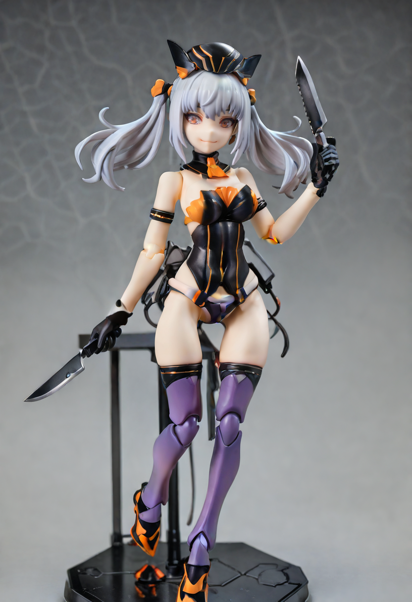 SSPUMPR1N, hat, white hair, twintails, detached collar, armlet, leotard, panties, purple thighhighs, claws, s