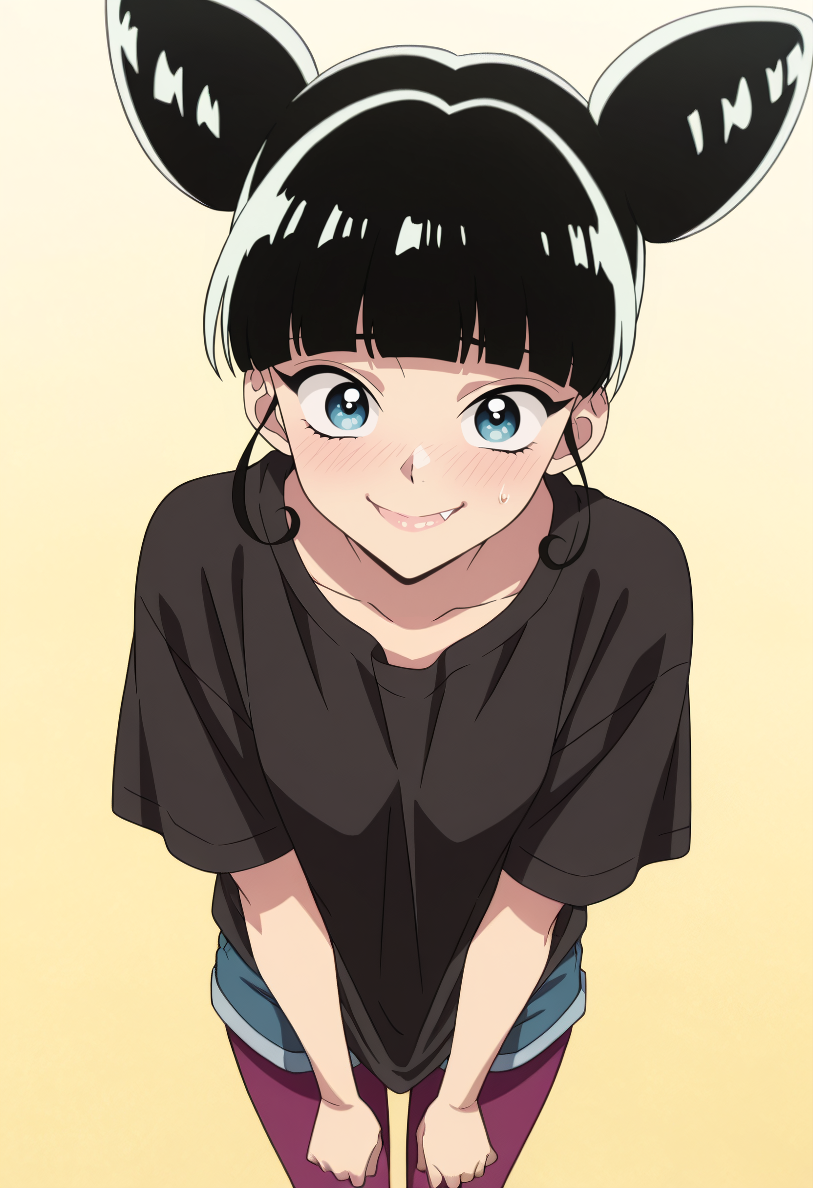 KGRXiaohei, 검은 머리, 단정한 앞머리, 단발, 머리 땋기, 더블 땋기, 파란 눈, 원뿔형 머리 땋기, 송곳니,