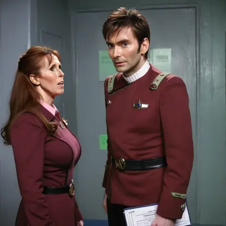 使用关键词 uniform 可强制生成“怪物深红”风格。spaceship 和 space station 通常能获得一些不错的《星际迷航》电影时代的设计,尽管不完全完美。(但肯定比我的先前尝试好得多。)