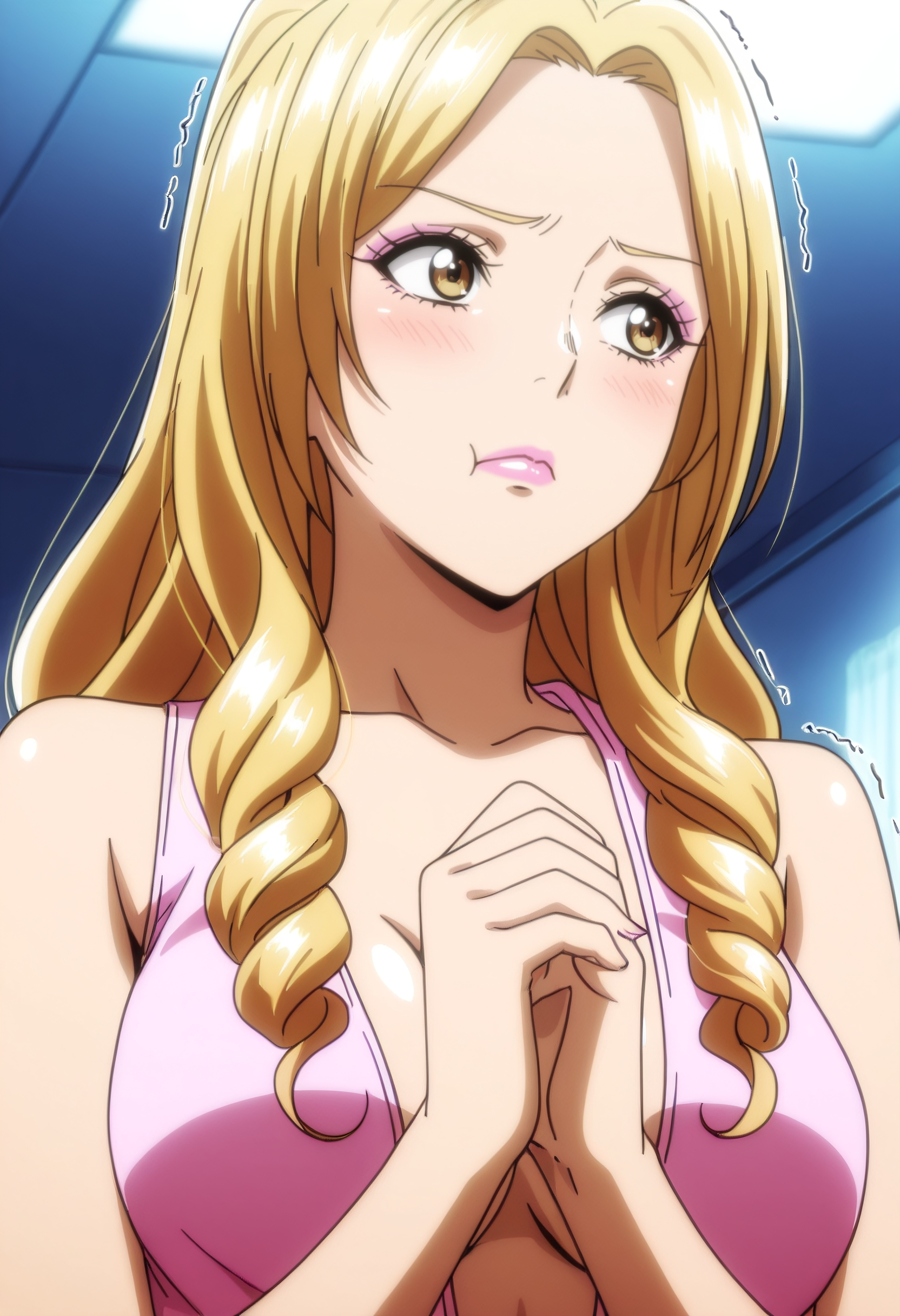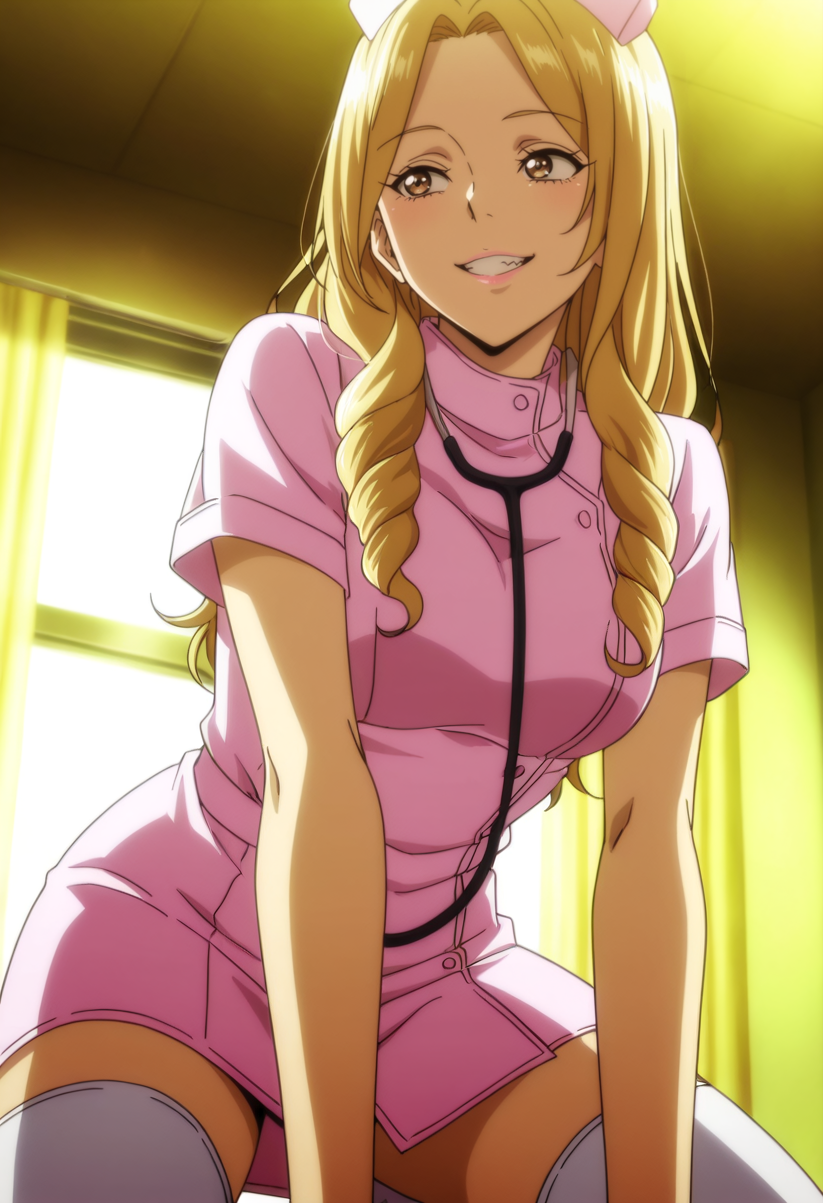 MHHHibiki, 긴 머리, 금발, 드릴 머리, 갈색 눈,