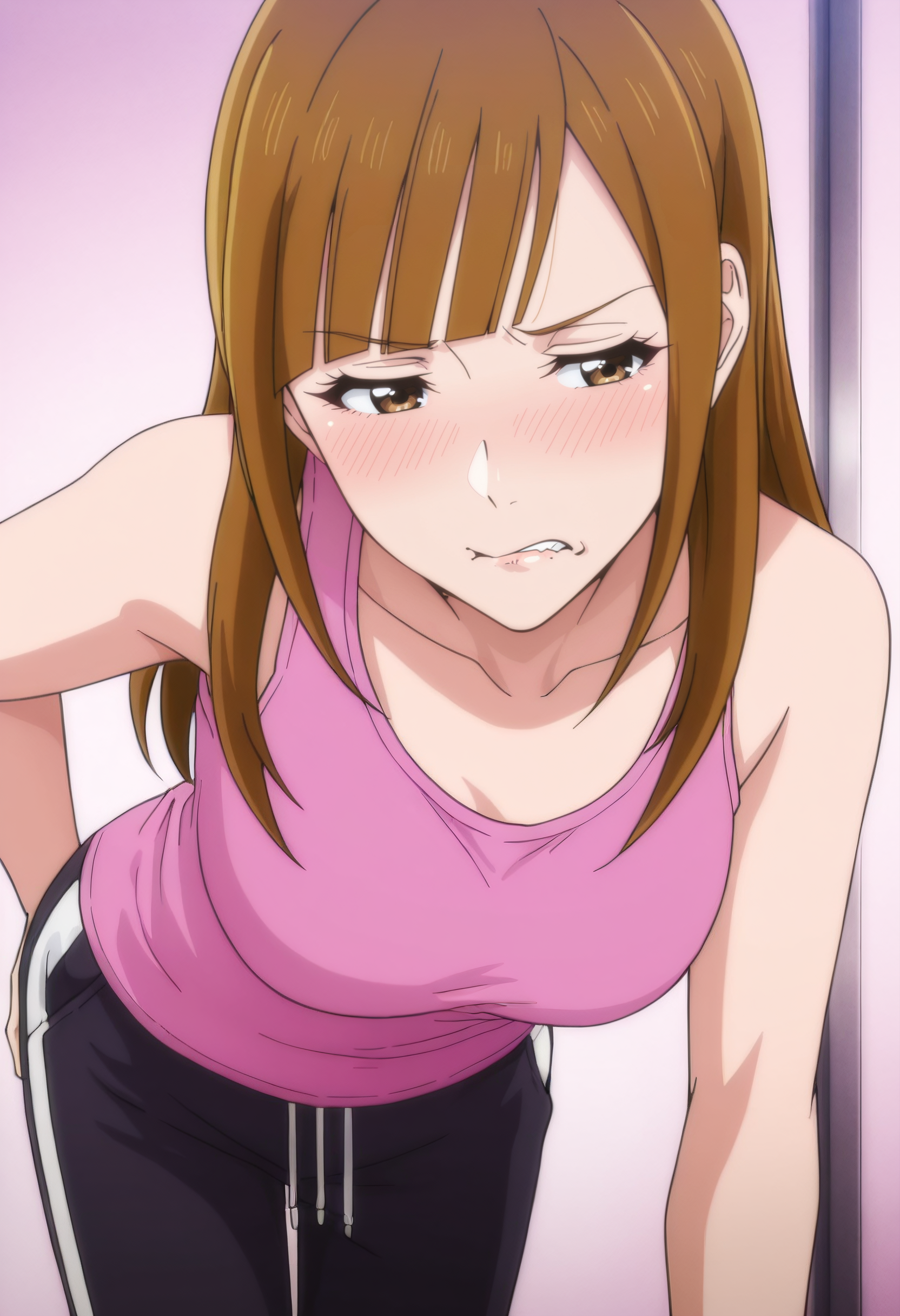 ReikaTanktop, 탱크탑, 분홍 탱크탑, 소매 없음, 바지, 캐주얼, 트랙 팬츠, 맨발, 스웨트팬츠, 검은 바지,