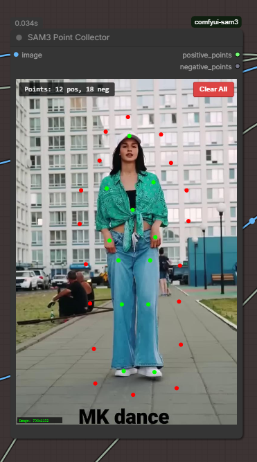 初回実行時は失敗しますが、その画像はSAM3 Point Collectorに読み込まれます。メインキャラクターを以下のようにマーキングしてください: