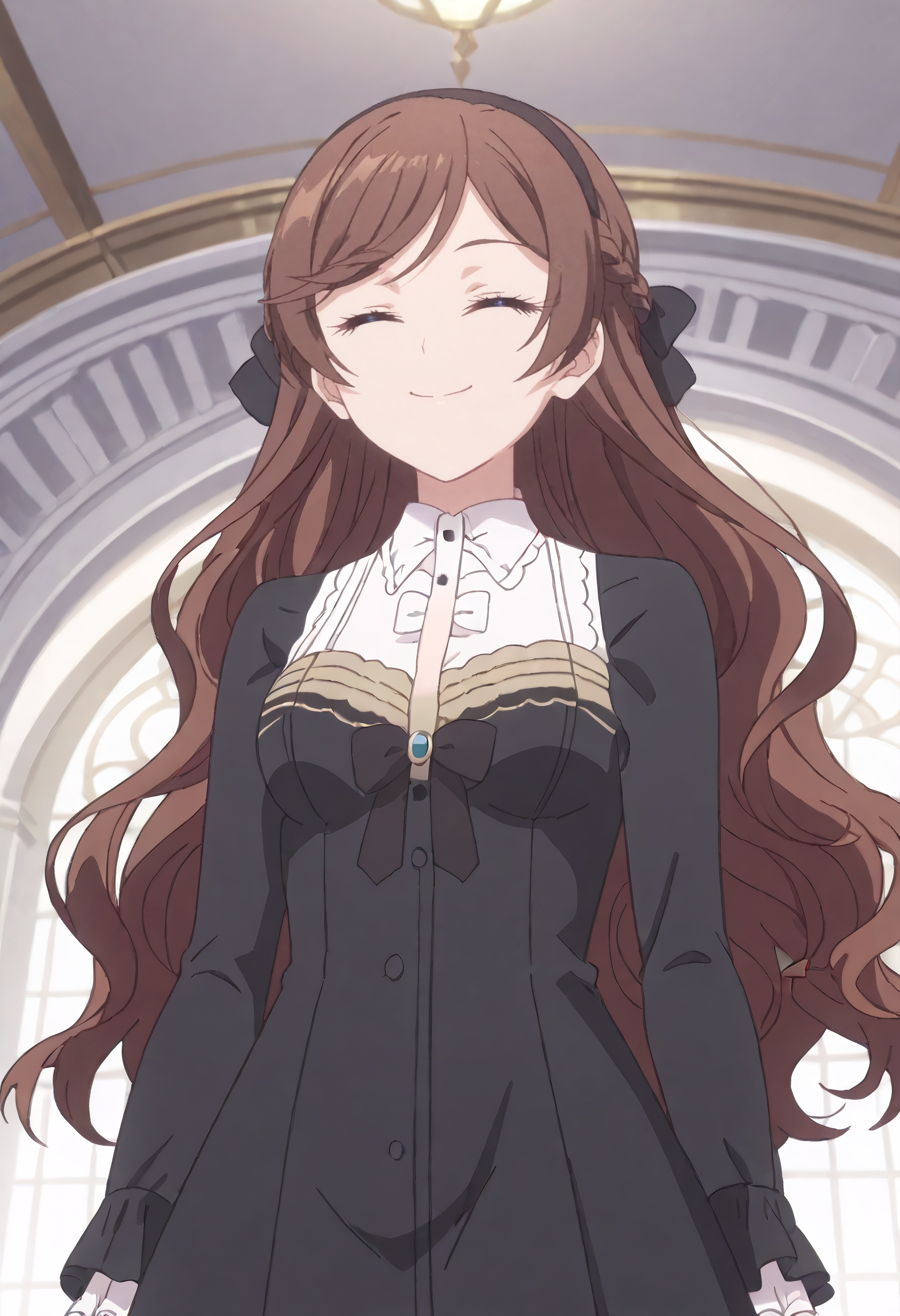GraceBlDress、ロングスリーブ、ヘアバンド、ブラックヘアバンド、ドレス、カラー付きドレス、ブラックドレス、髪のリボン、リボン、ボタン、ブラックリボン、ロングドレス