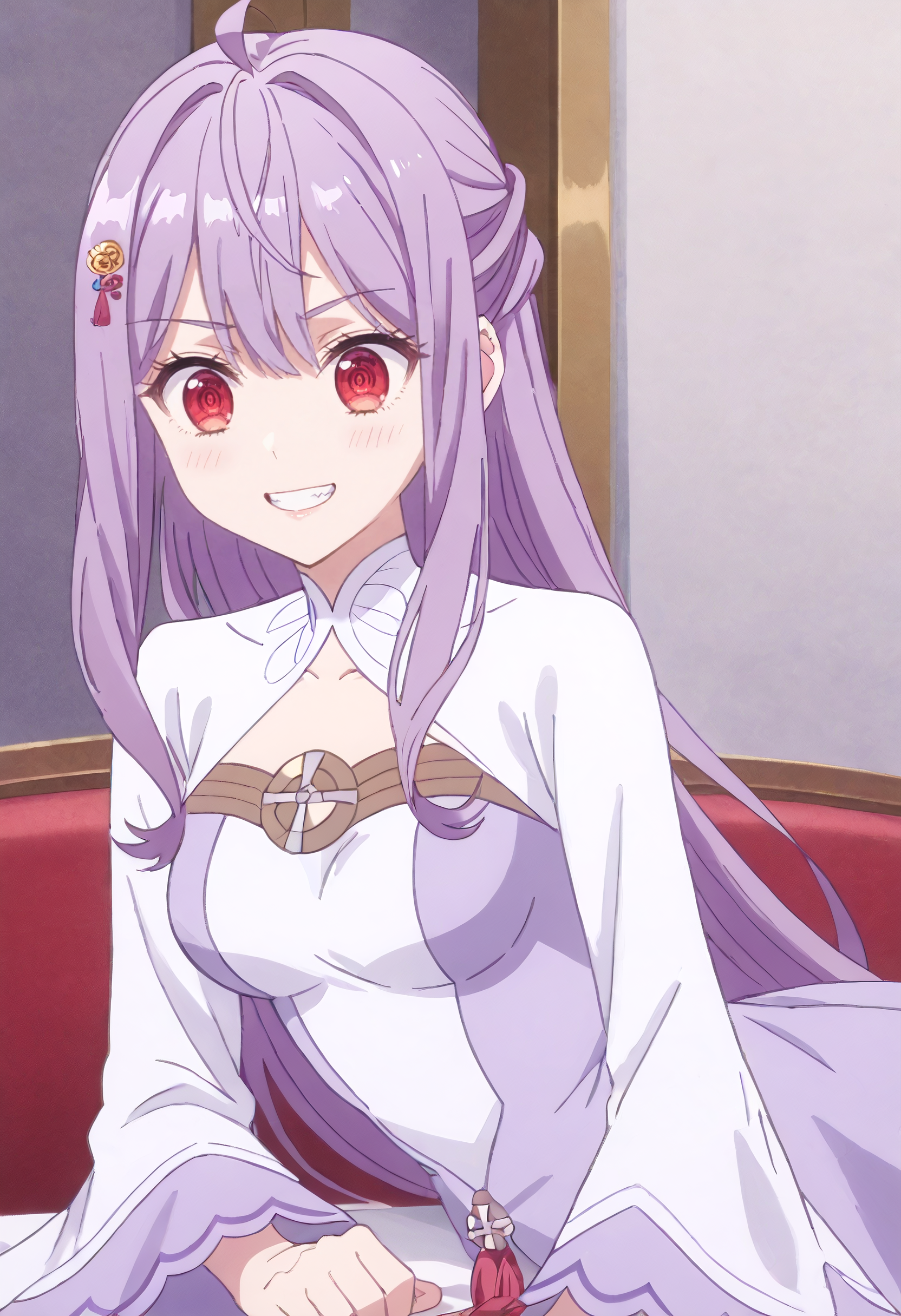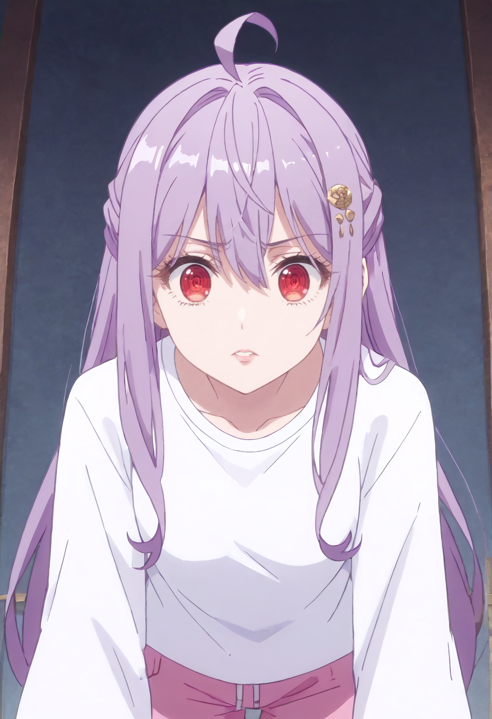 KTMia、紫髪、長髪、赤い目、サイドロックス、非常に長い髪、アホ毛、目の間の髪