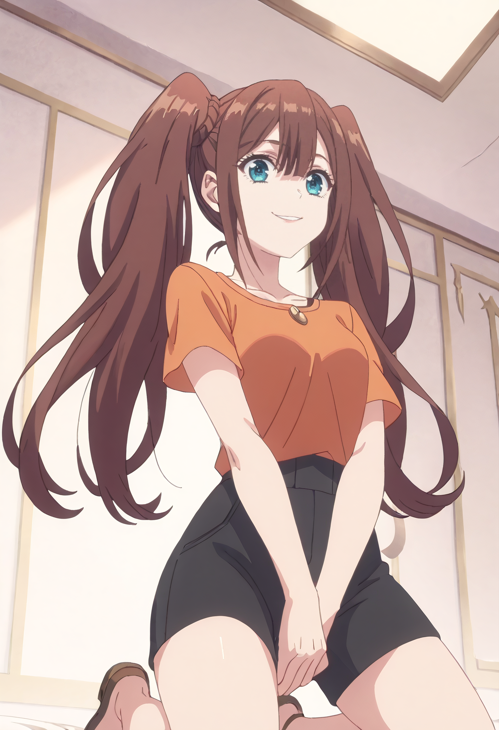 KTLena、長い髪、茶色の髪、ツインテール、青い目、編み髪、目の間に髪