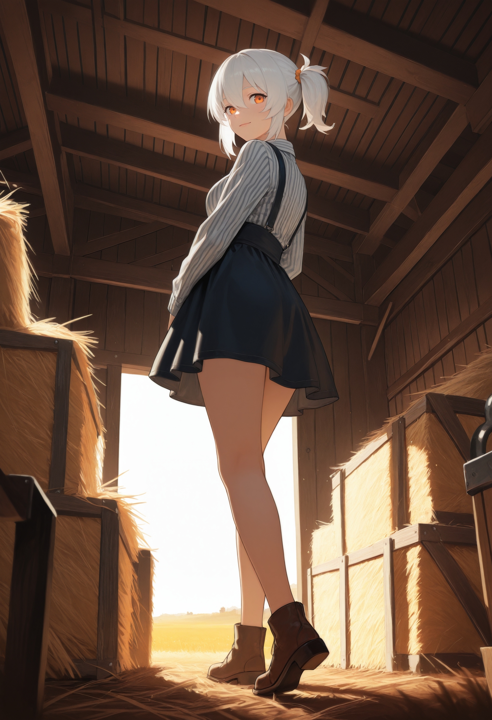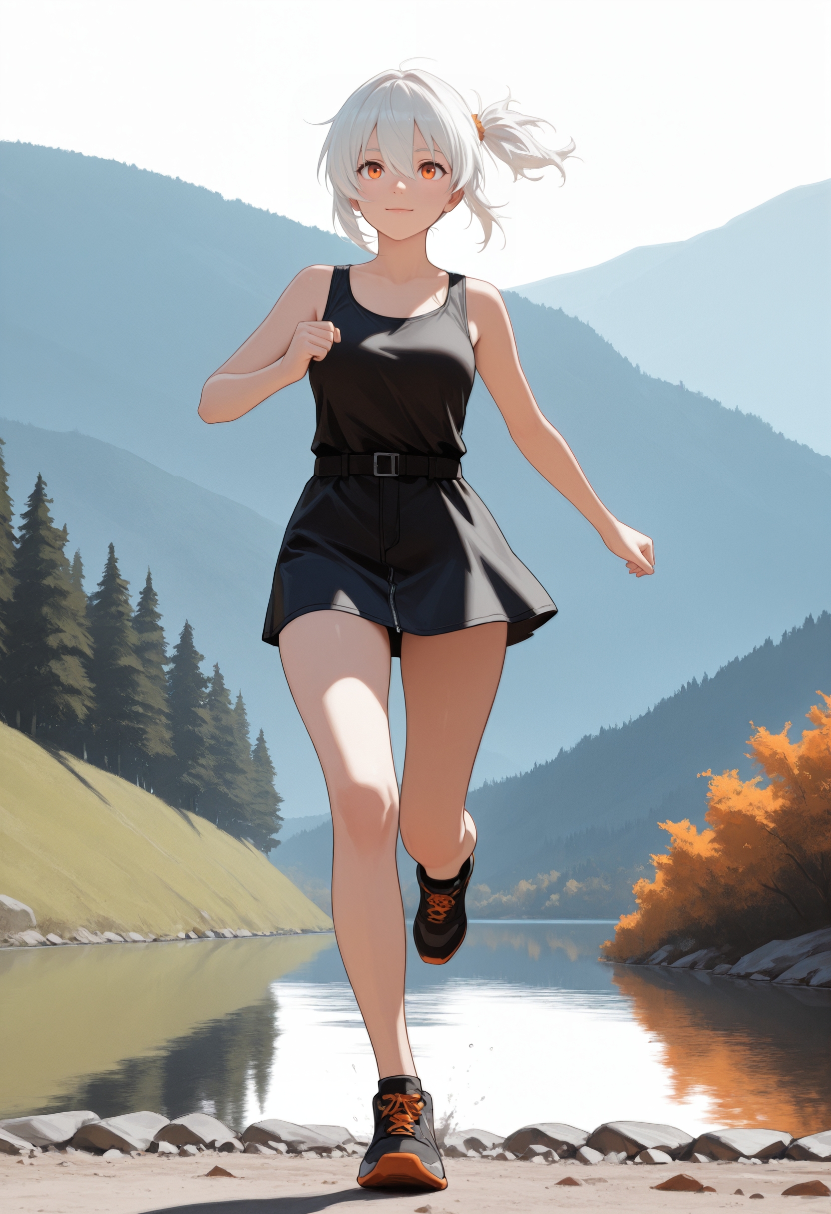 (肯定的プロンプト)zsoldier11, hair between eyes, orange eyes, short ponytail, white hair, short hair, side ponytail, ponytail,