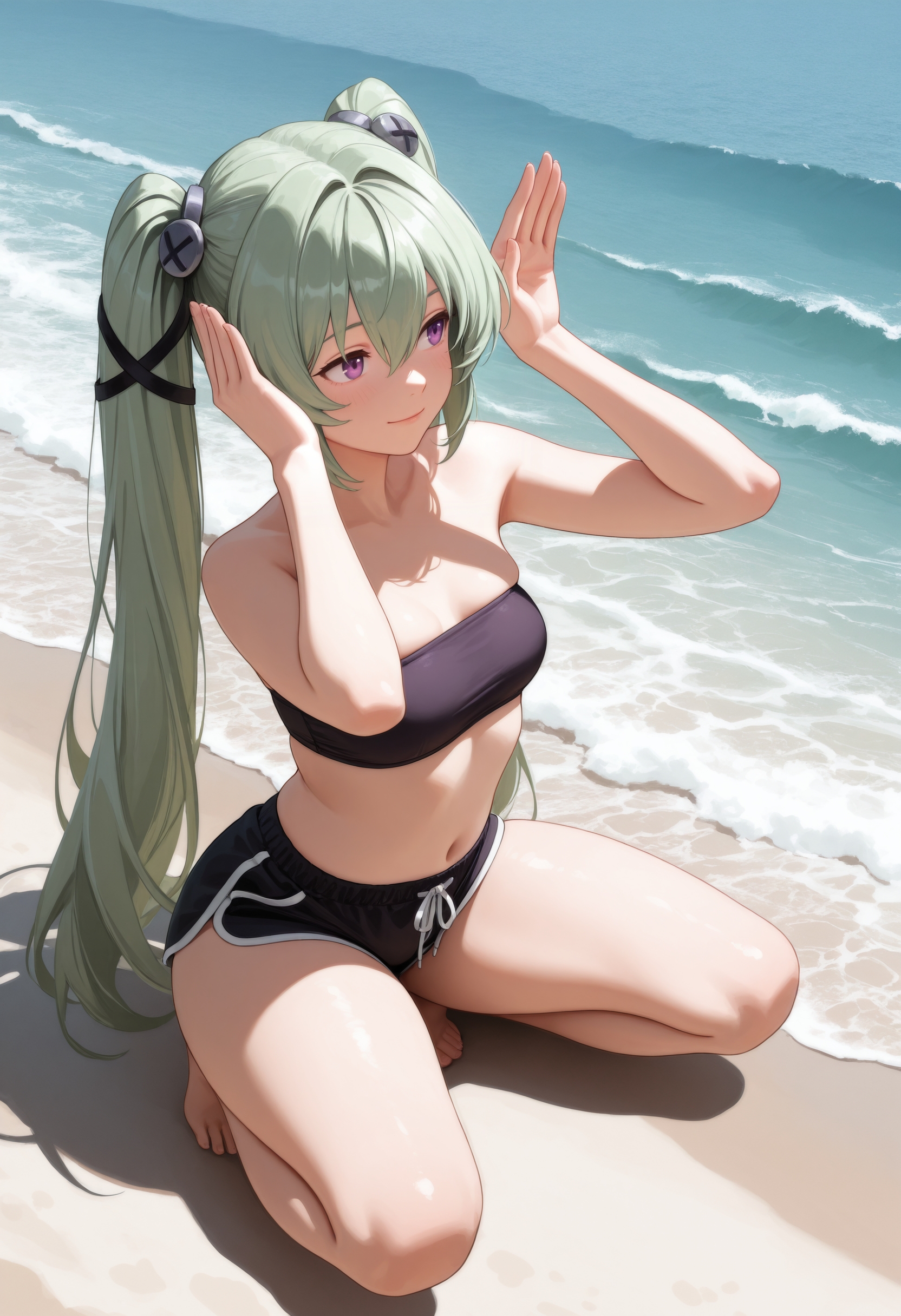 このモデルは、キャラクターの公式衣装外での描写を目的としており、キャラクターを認識可能に保ちながら、衣装やスタイルの柔軟な変更を可能にします。これにより、衣装の要素が漏れることを防ぎ、水着や他の衣装・スタイルのバリエーションをよりよくサポートします。