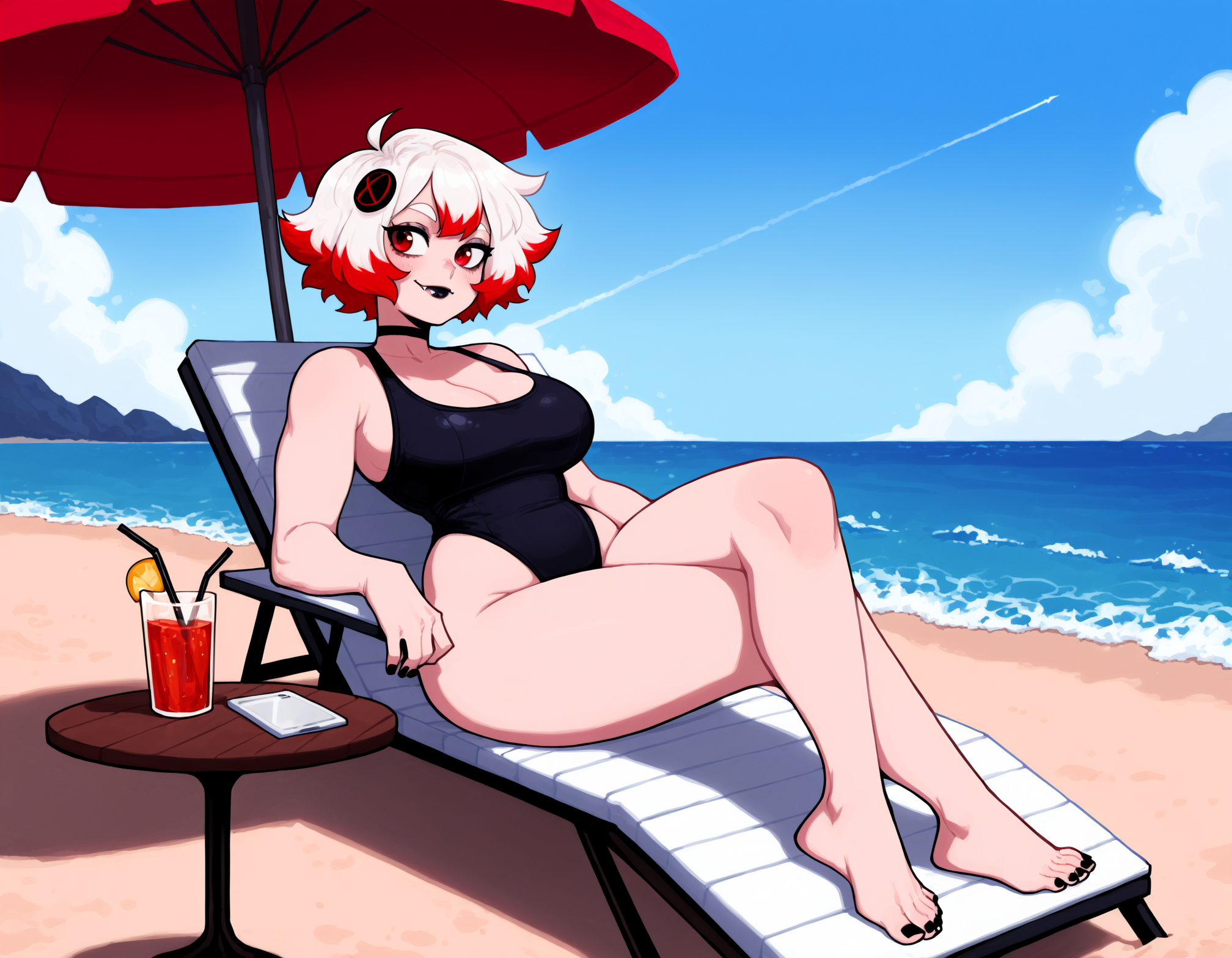 현재 문제점: 그녀의 헤드폰 안테나가 때로는 정확하게 표현되지 않으며, X 모양의 머리 장신구가 머리 양쪽에 복제되는 경우가 있습니다. 그녀의 이분된 턱을 표현하는 데 어려움을 겪을 수 있습니다.