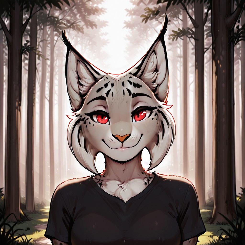 Lily(character), anthro, lynx, furry, futa, female, horse cock, Red eyes,