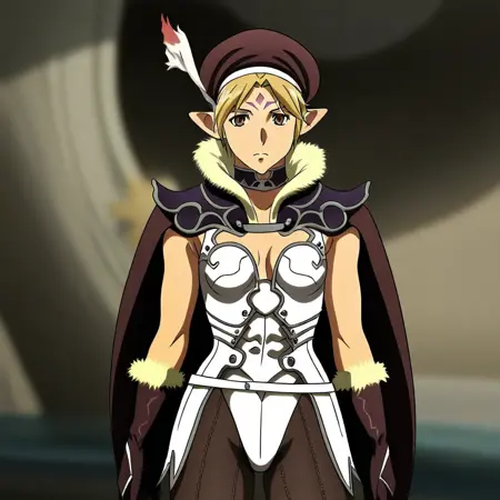 - Scherzscfour、金髪、短髪、尖った耳、額の模様