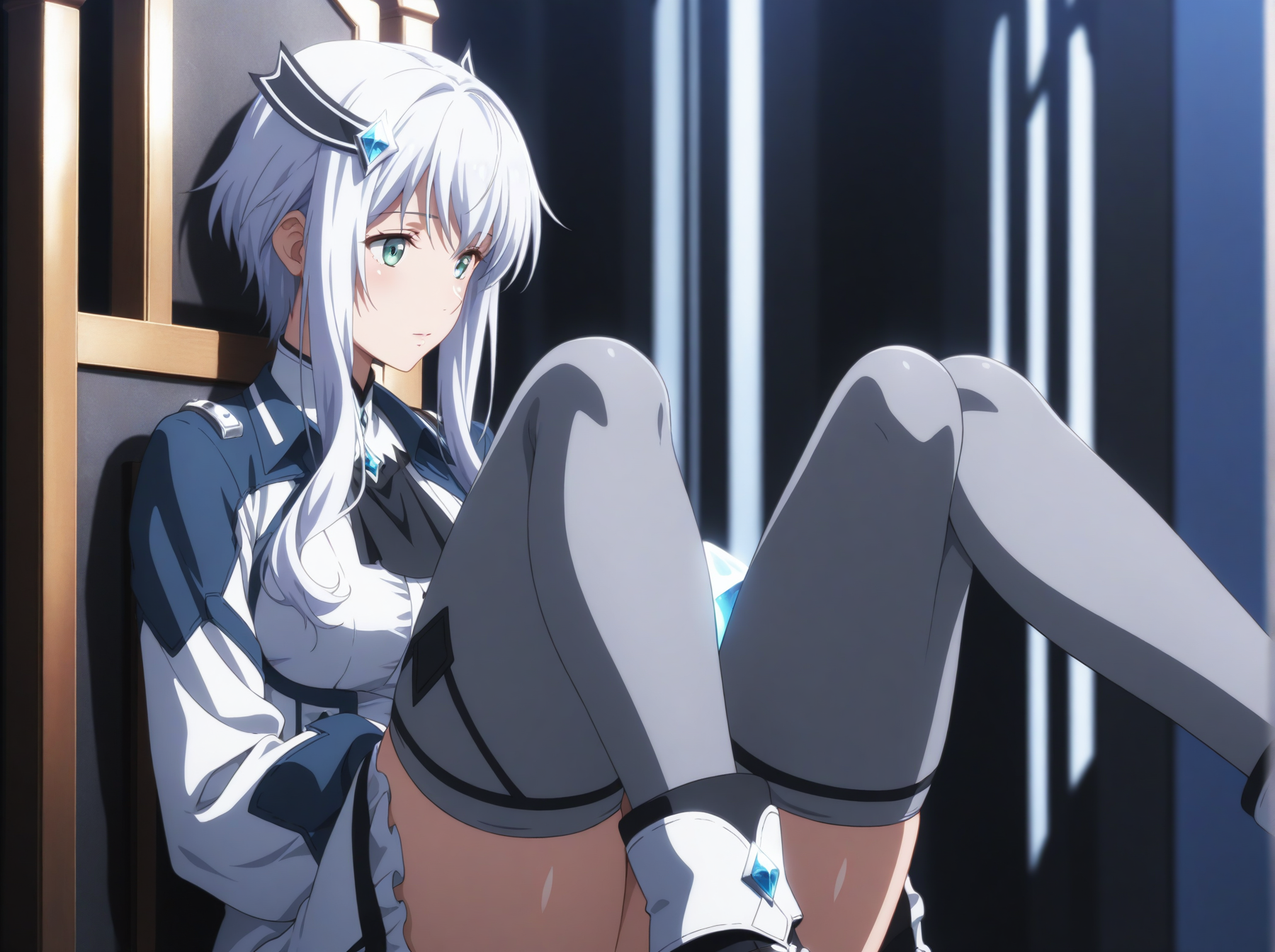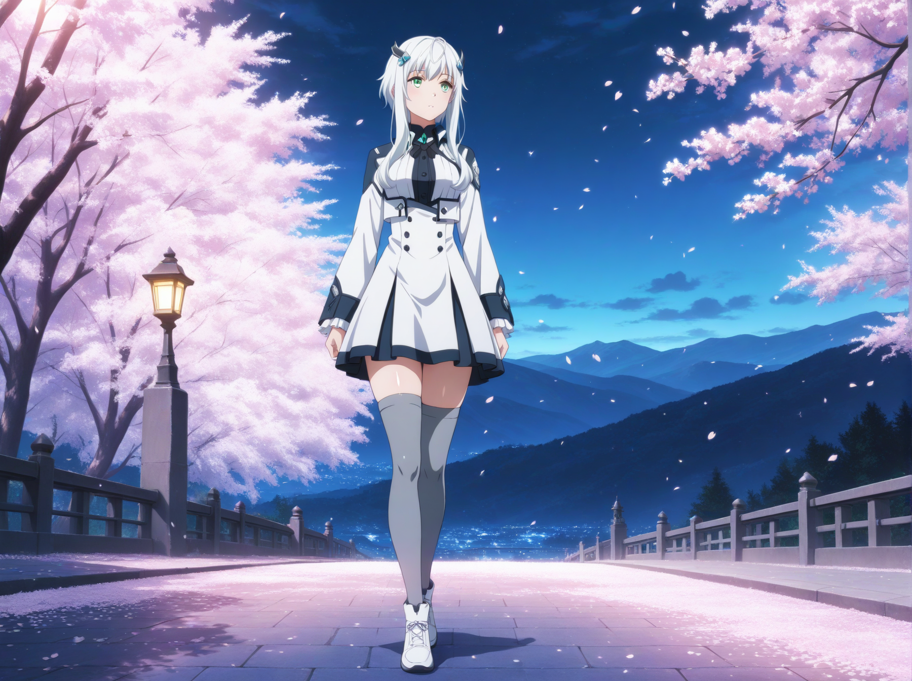 옷: (드레스, 높은 칼라, 긴 소매, 젯타이 료이키, 허벅지 긴 양말)