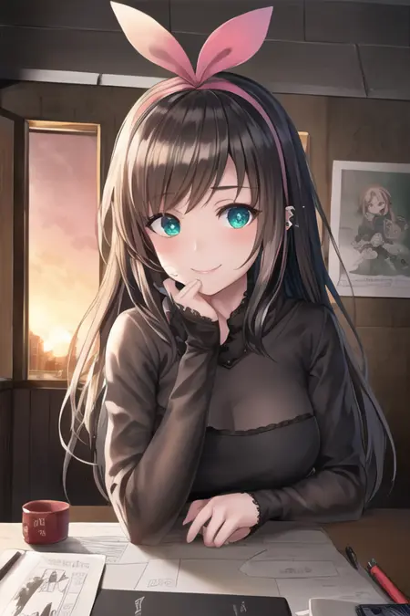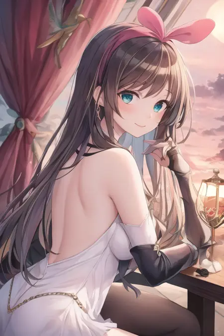 该模型专注于灵活调整,你可以轻松让她穿上不同的服装,触发词为“Kizuna Ai”,训练数据图像着重于她粉色发带 :3。