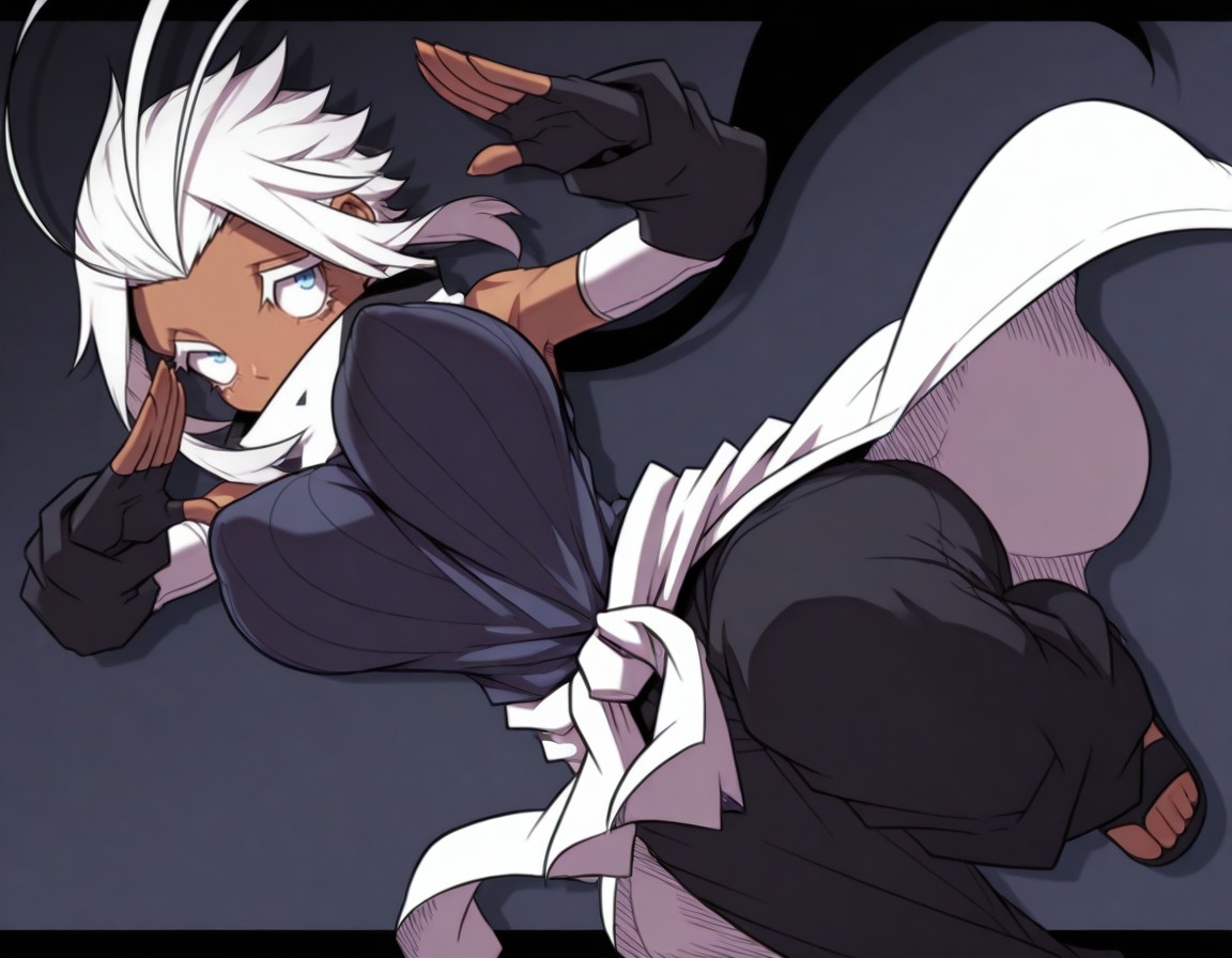 blue eyes white eyelashes big boobs sanpaku eyes sidelocks antenna hair short hair white hair dark skin