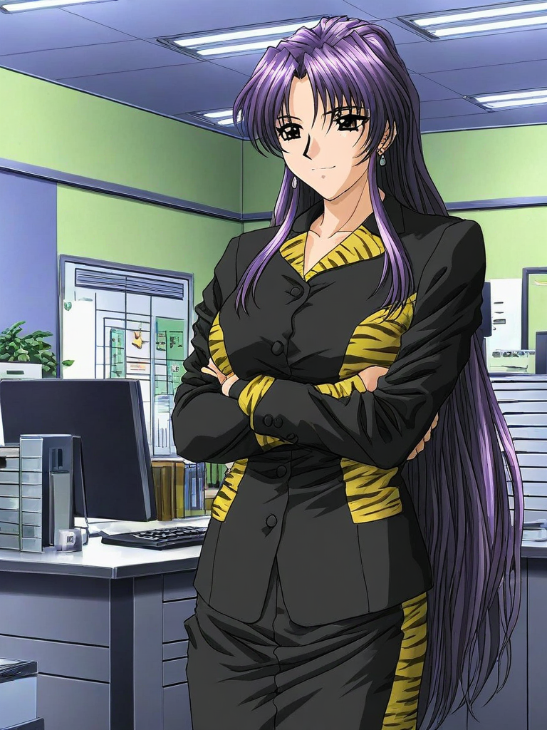 Katsuragi_Yayoi, 1girl, solo, very long hair, purple hair, earrings, breasts, brown eyes,