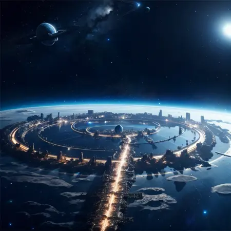 此 LoRa 受 MJ 中的 “CRYSTAL RING” 启发,权重约 0.5 时表现为星球表面的环形城市空间,权重 0.9-1 时则展现独特的太空飞船。