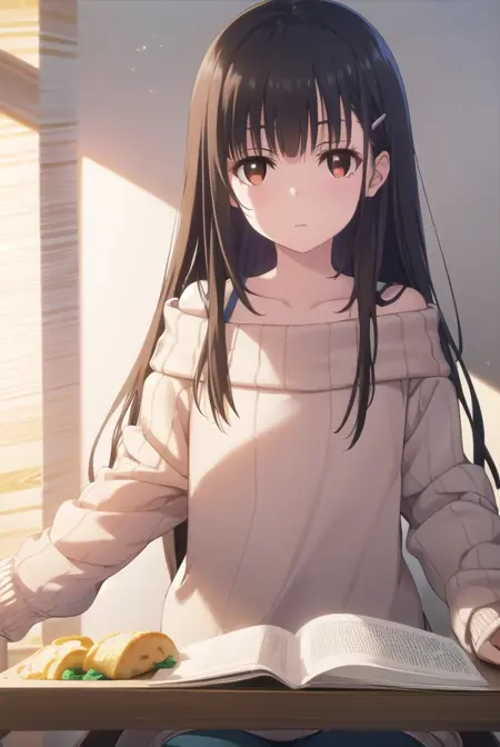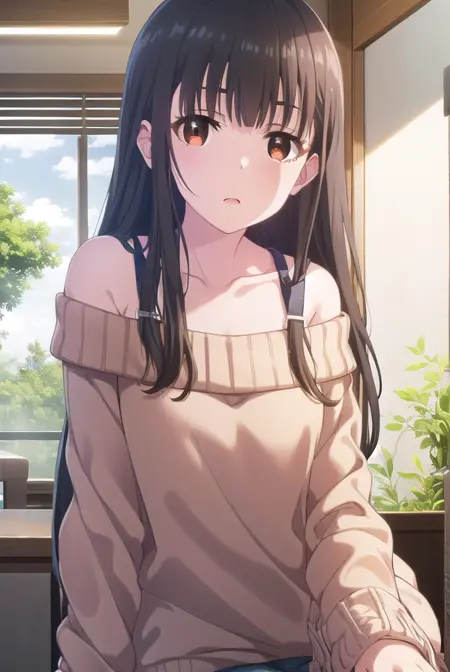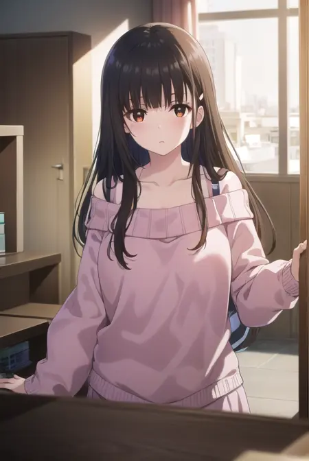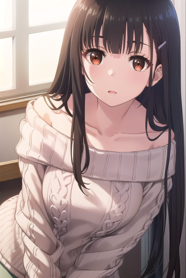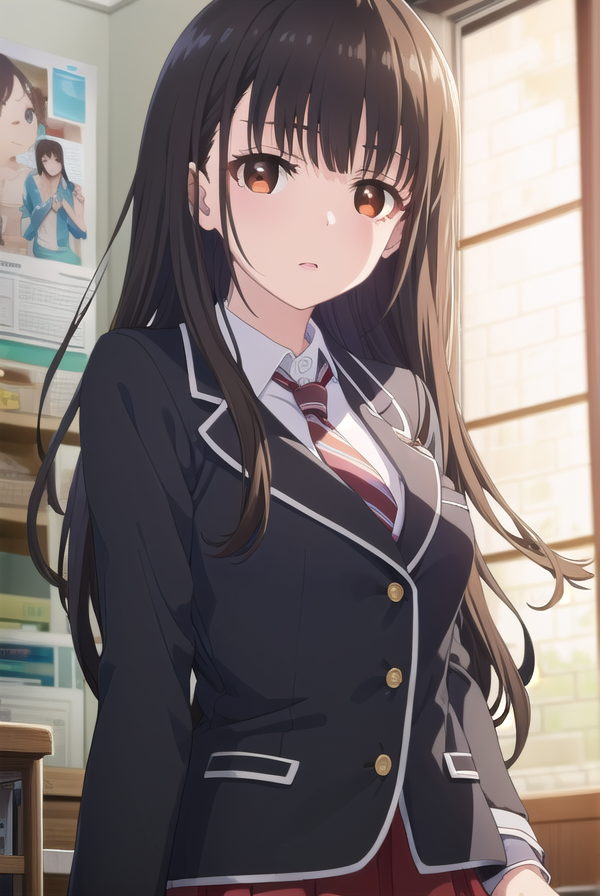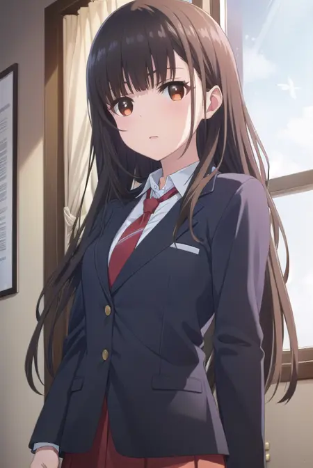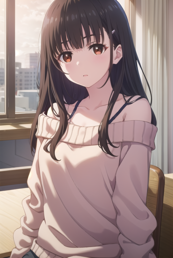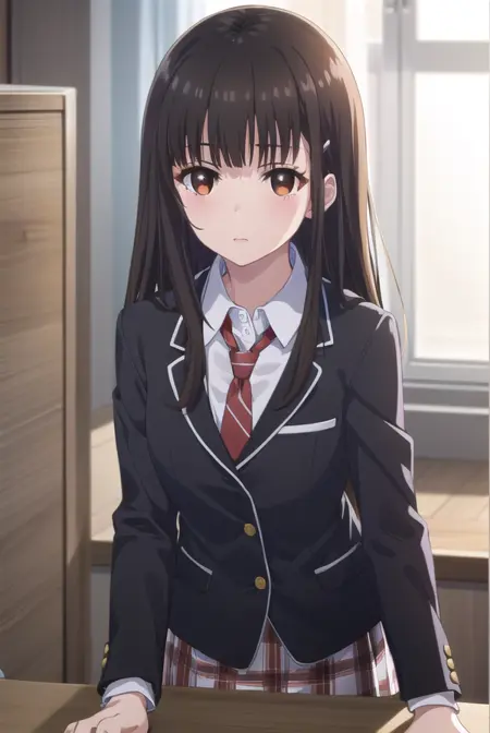 yume irido, long hair, bangs, black hair, hair ornament, (brown eyes:1.5), hairclip,
