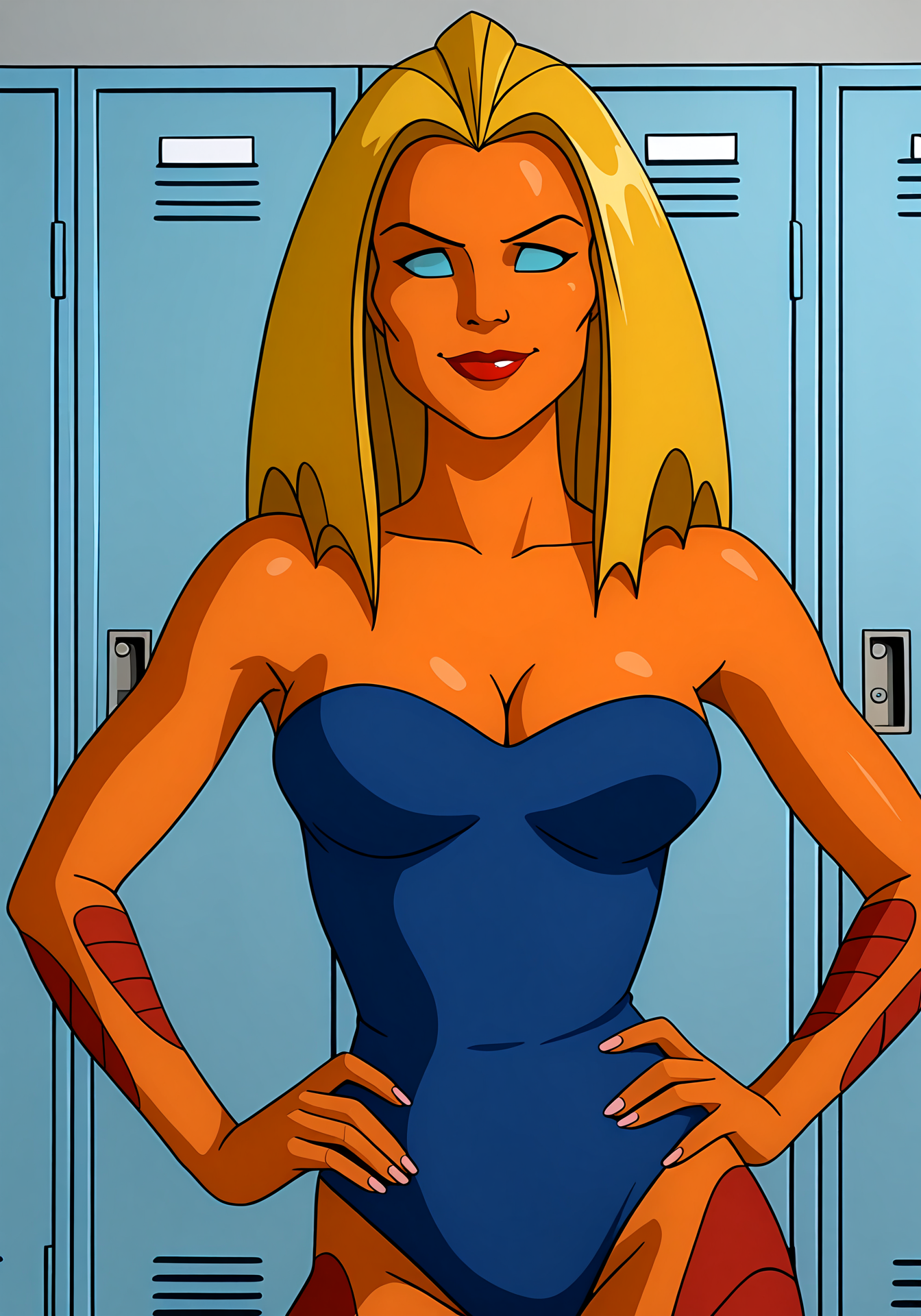 オンライン上で彼女の画像を1枚も見つけることができなかったが、幸いにもほとんどのエピソードはまだオンラインで見られる。彼女のロッカールームの衣装だけが有効で、ストラップレスの水着/レオタードである。キャラクターたちがほとんど時間を下着姿で過ごしているのは、この番組のほとんどがロッカールームで展開されているため、非常に滑稽だ。