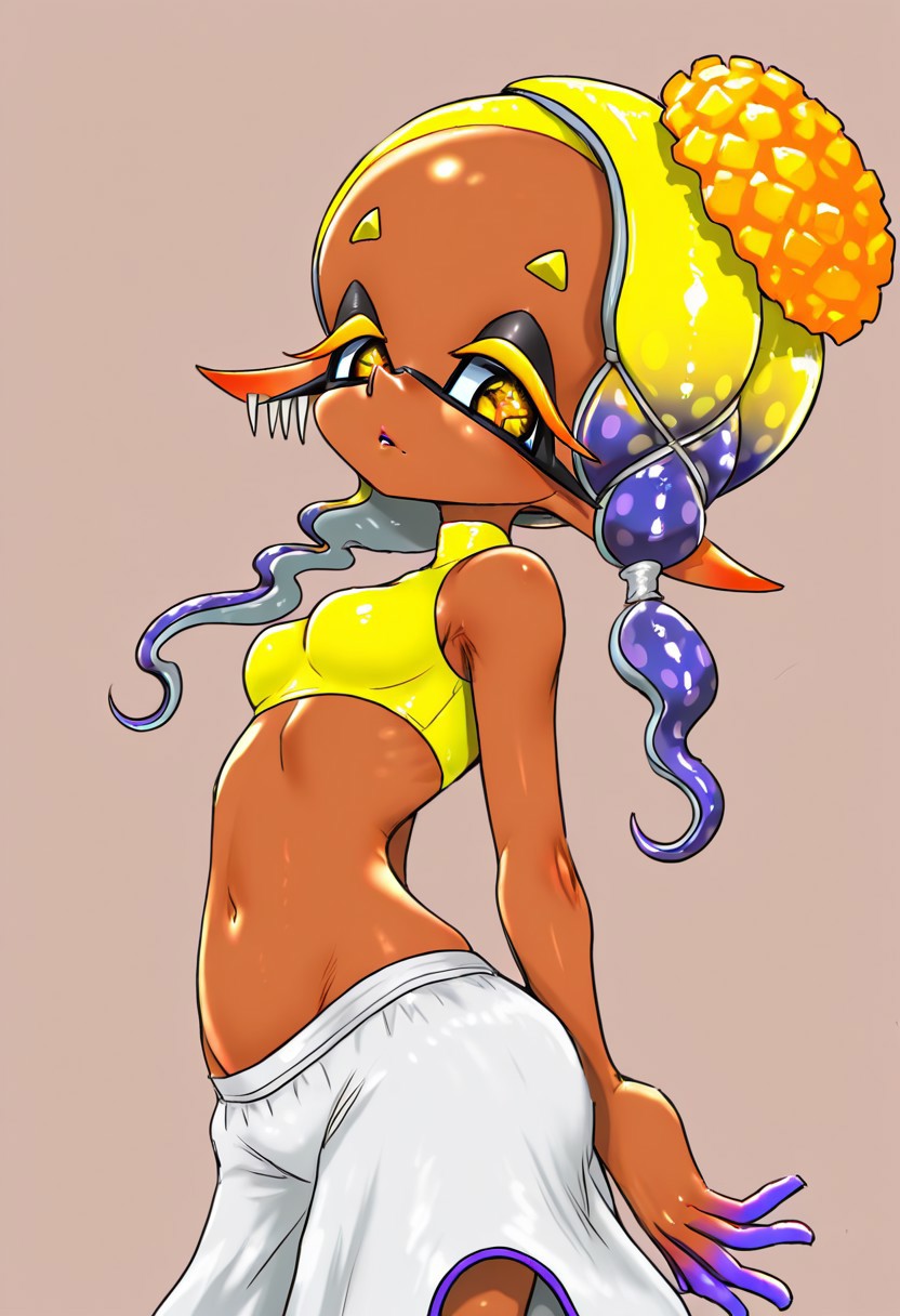 「marina (splatoon)、尖った耳、黒い肌、複色の髪」などと入力する必要はなく、「marina (splatoon)」と入力するだけで、完璧に生成されます。