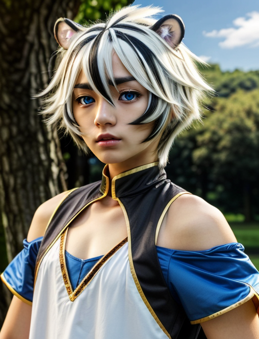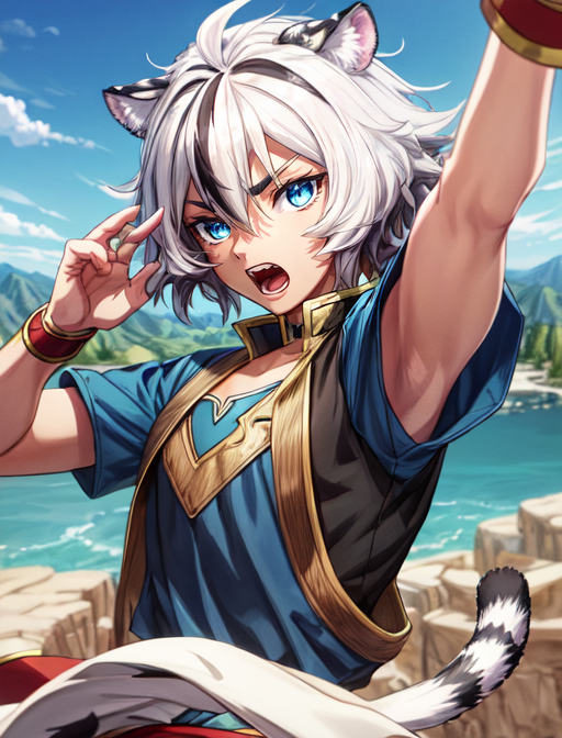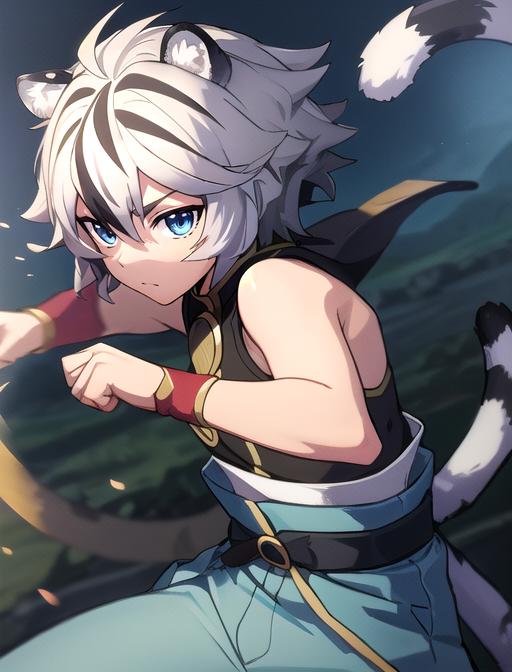其他可能有帮助的词:蓝色眼睛、虎童、虎尾、双色头发、白发、黑发、虎耳