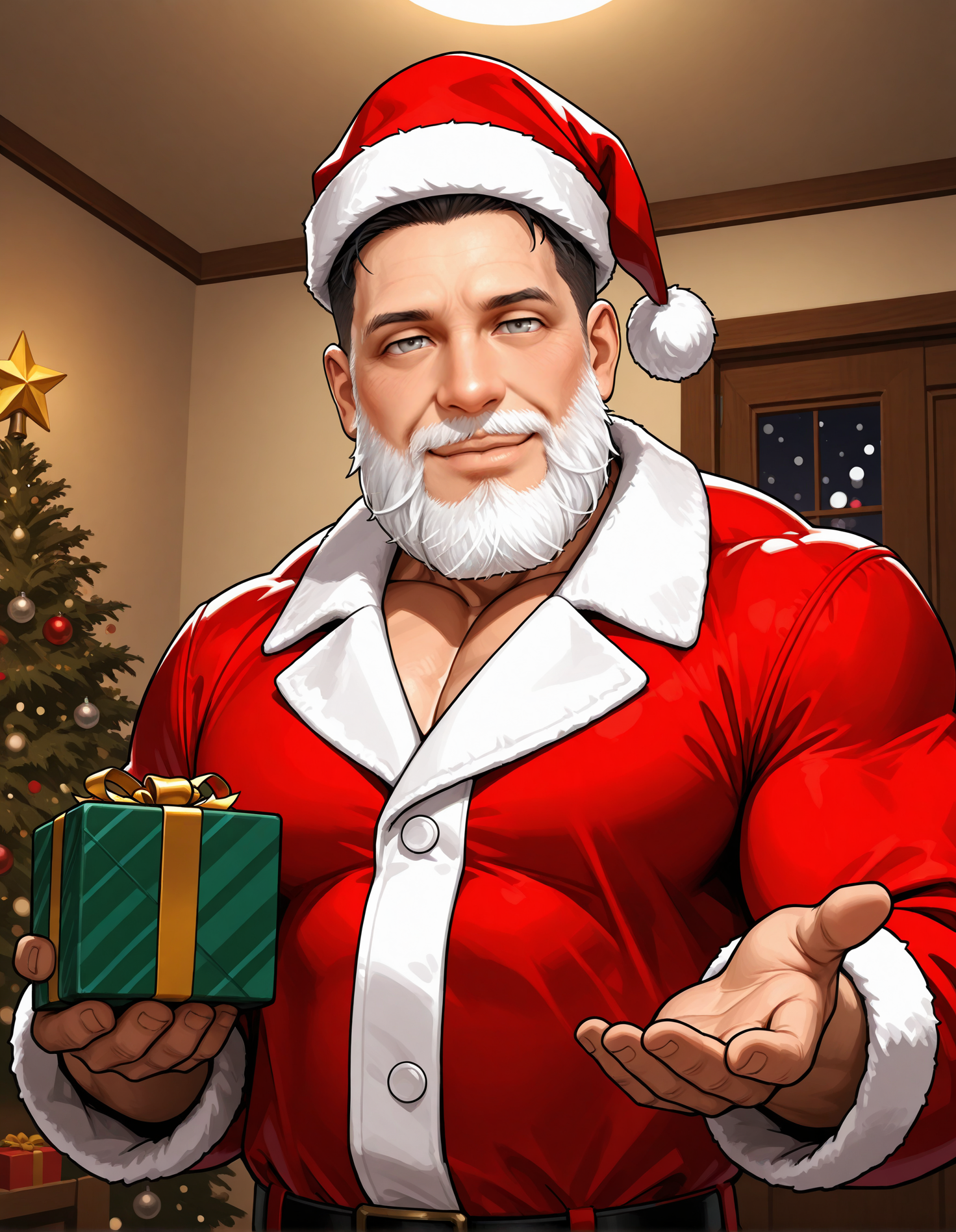 태그: zazaurur, 흰 수염, 드레드 업 헤어스타일, 어두운 회색 눈, 검은 머리