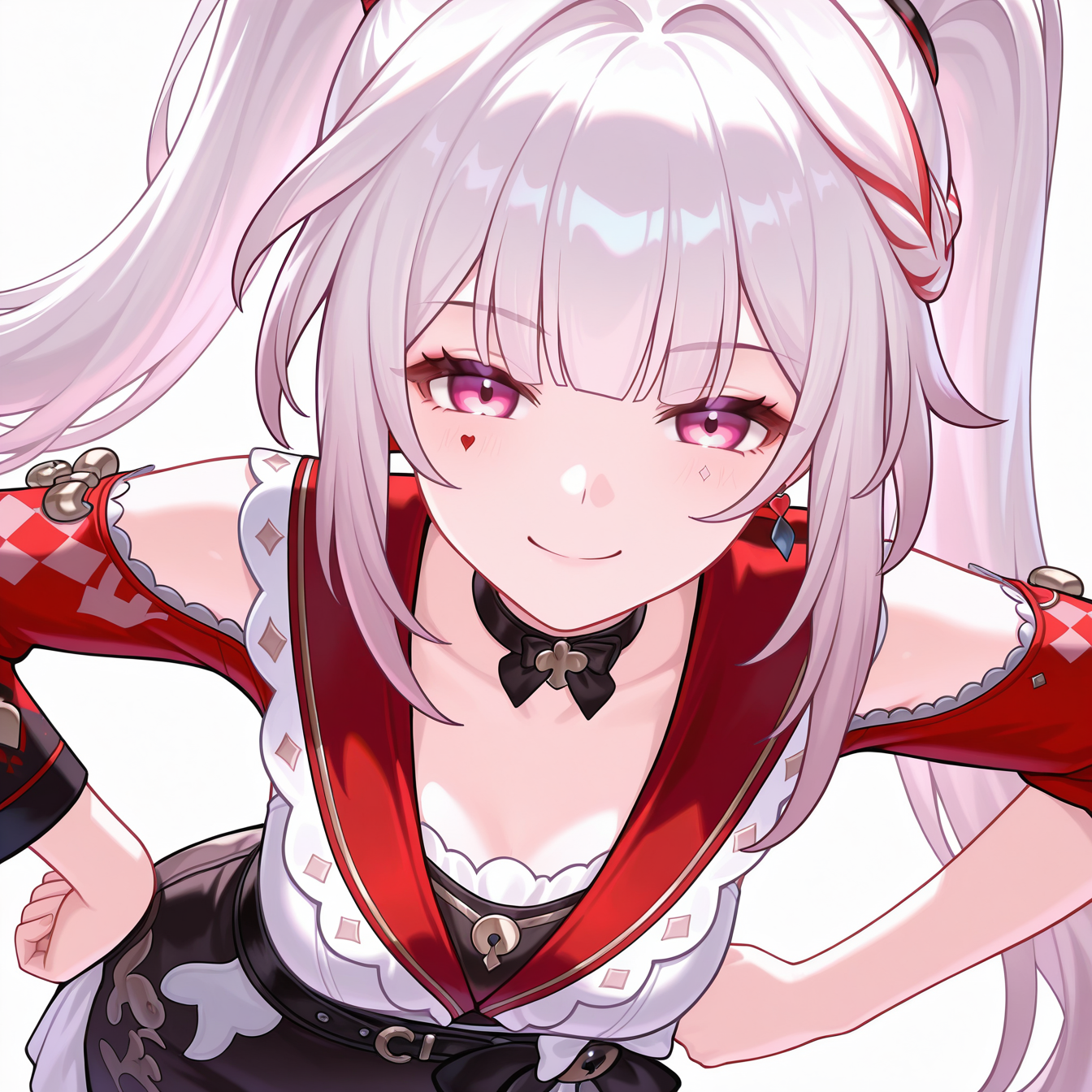 hat, dress, choker, gloves, boots, earrings。更换服装: 实测下来我在我常用的checkpoint模型上在去掉上述官方服装提示词后,可以自由添加任意喜欢的服装元素。如果你在使用其他checkpoint模型推理时仍发现有官方服装残留,建议将上述标签加入到负面提示词中。