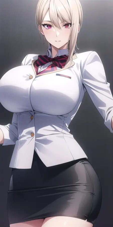 School_uniform_White_shirt_Brown_miniskirt_Yellow_sweater_Red_necktie: her school uniform.