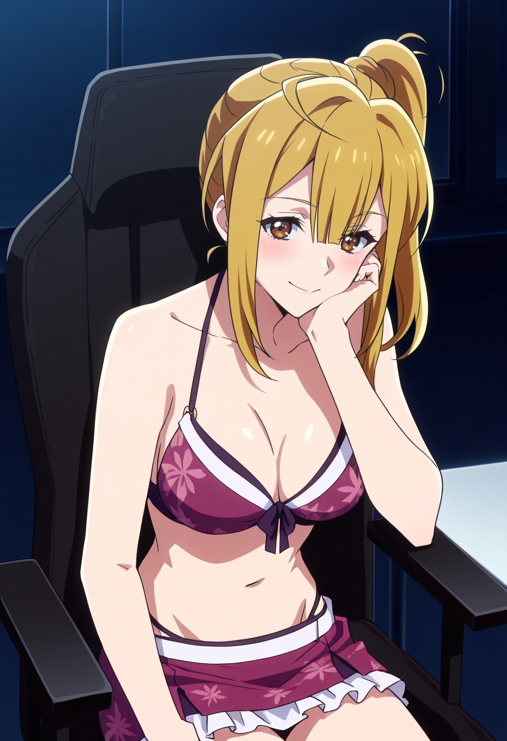 FFrItsuki, 갈색 눈, 긴 머리, 금발 머리, 앞머리, 측면 머리카락, 아호게, 단발머리, 머리카락을 통해 보이는 눈썹,