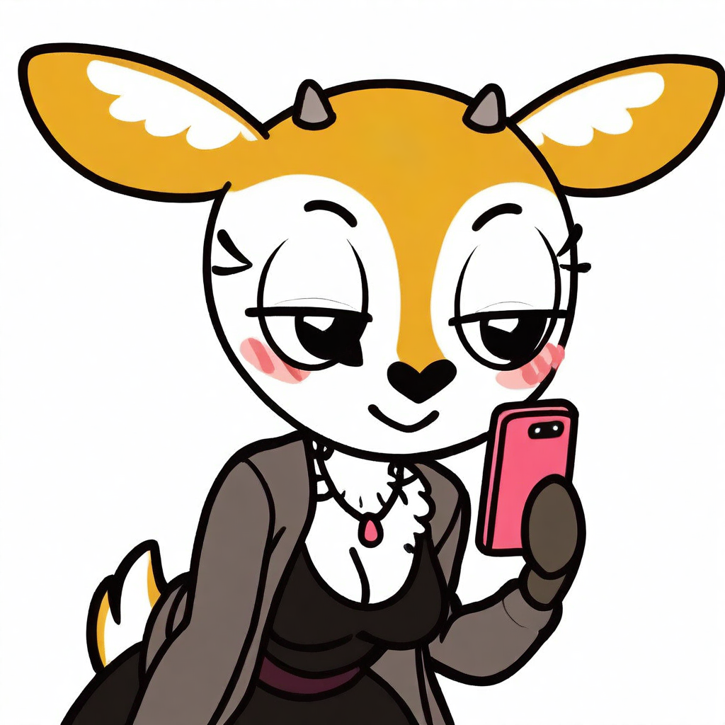 1girl, rounded face, cute, furry gazelle, animal ears, horns, blush stickers, black eyes, clothes