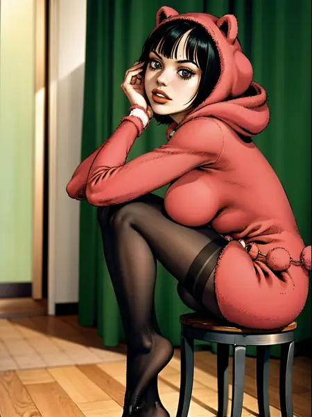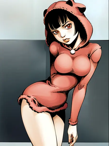 基础提示:1girl, solo, 1Daiya_higashikata, hood, bob cut, animal ears, pantyhose, striped, vertical stripe